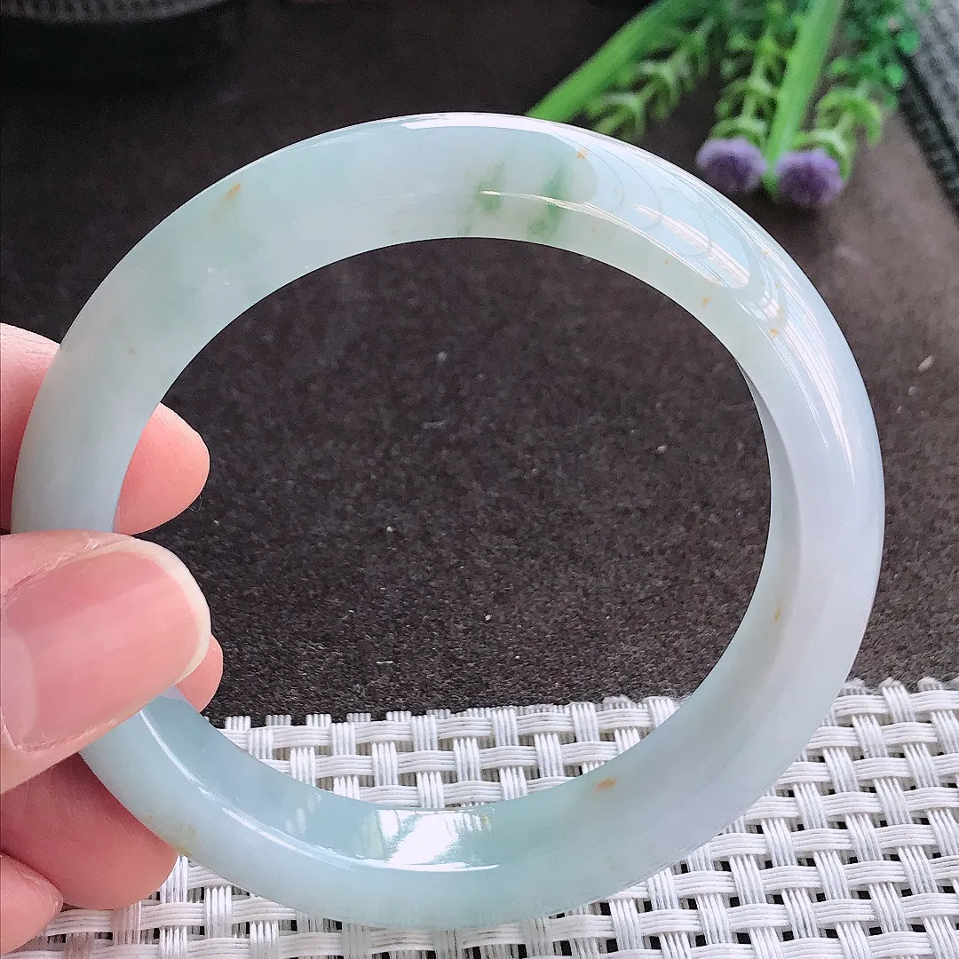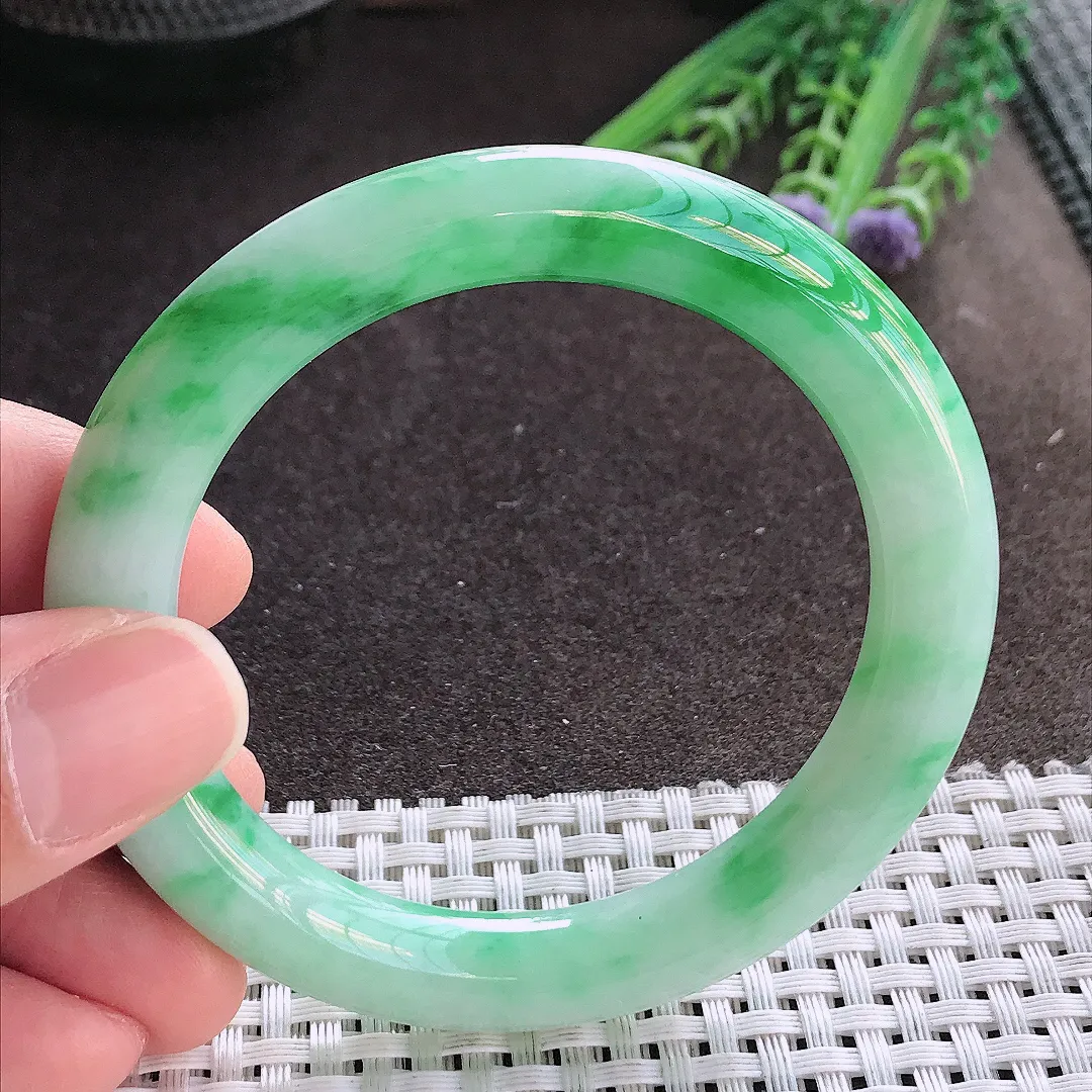 实拍A货翡翠57/11.9/8.5老坑冰胶水灵飘花手镯宽边玉镯手环