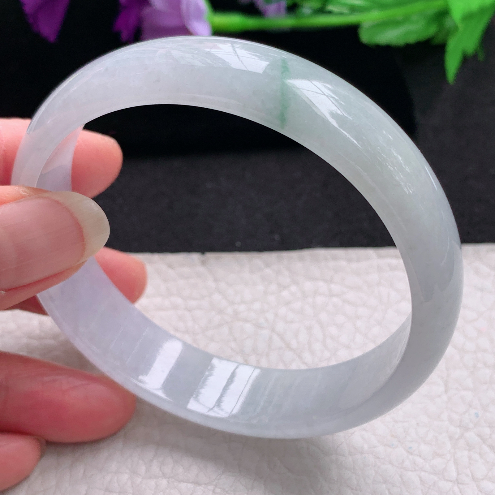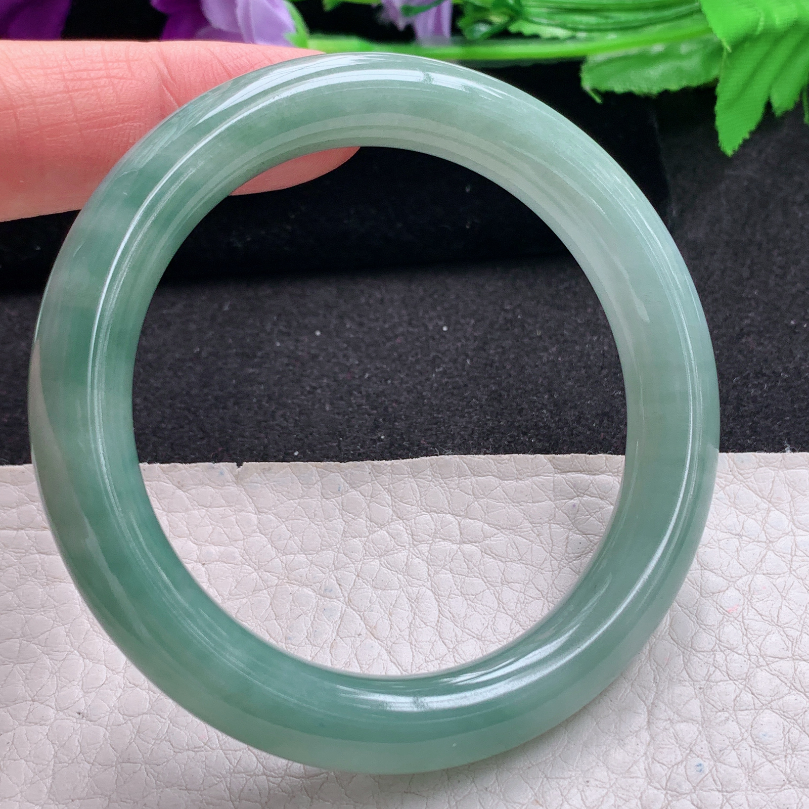 A货天然翡翠冰糯种飘花手镯59圈重量52.54 3月21日