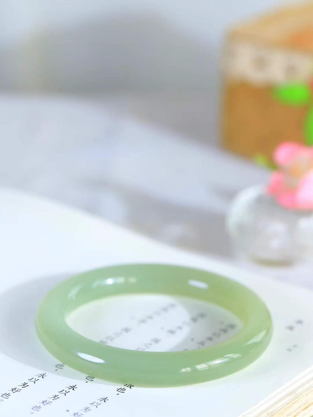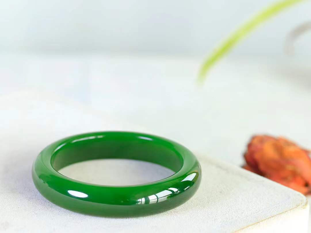 (碧色荡漾.手镯) 收藏级臻品和田玉碧玉手镯,灼灼其华想像靓妆淡伫 ,腕间绿意跳脱冰壶莹,坐间