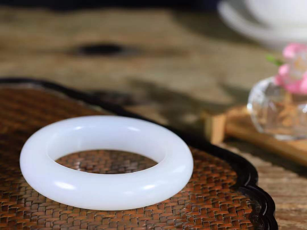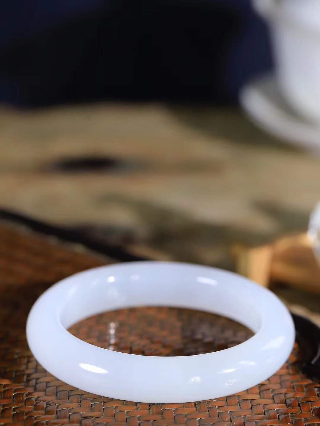 【情有独钟.手镯】 精品和田玉白玉手镯 玉质温润细腻 油性十足 手感舒适,高华雅逸,线条流畅,简