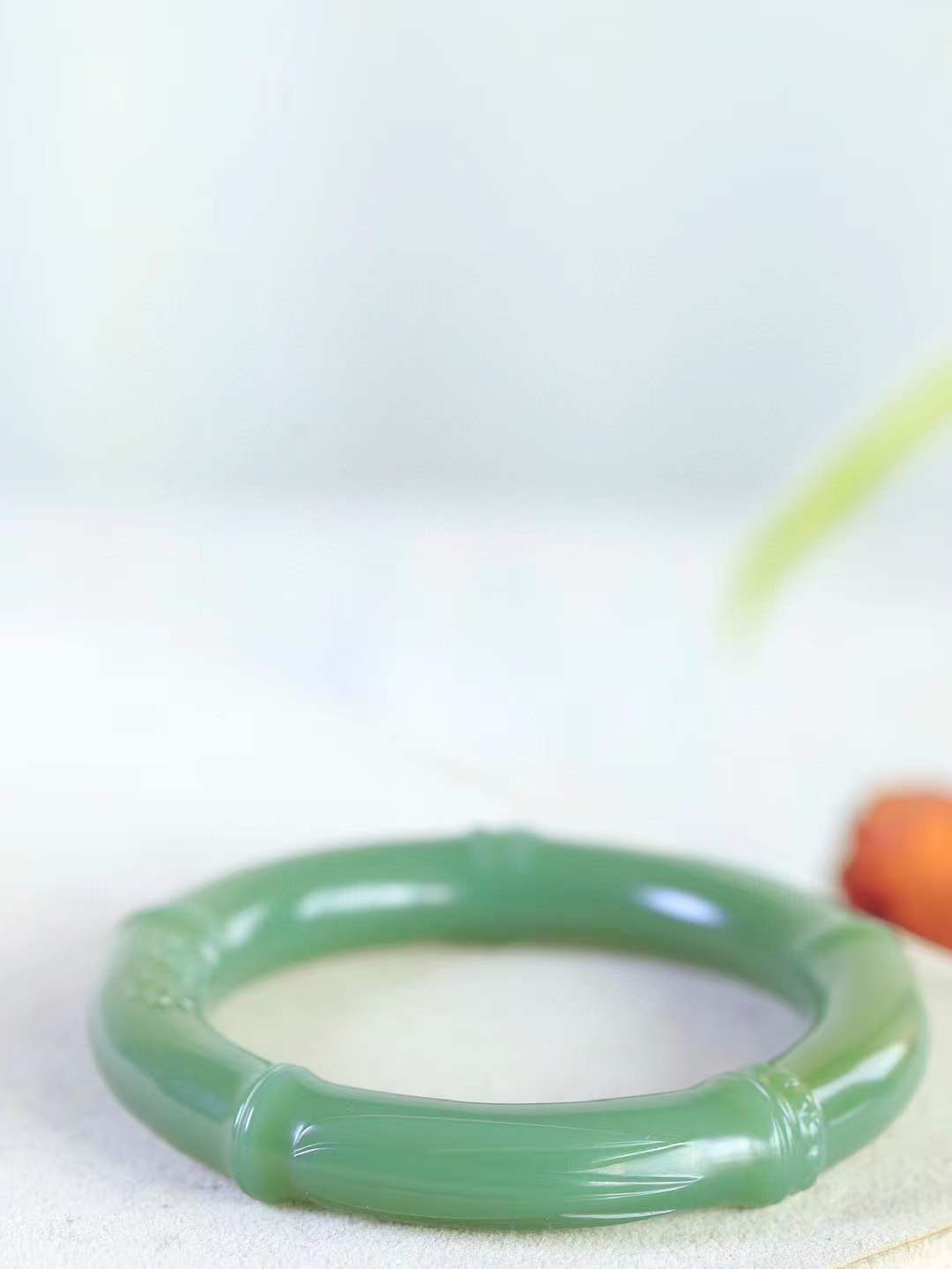 【节节高升.手镯】 精品和田玉碧玉竹手镯,玉质温润细腻,苏工精雕竹节,竹子品德高尚,生而有节,象