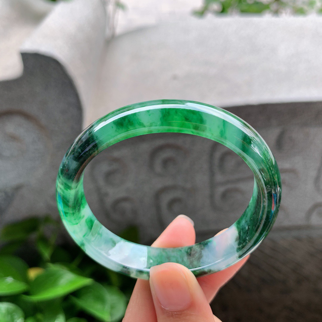 圈口54-10 【满绿圆条手镯】圆条54 55可戴
