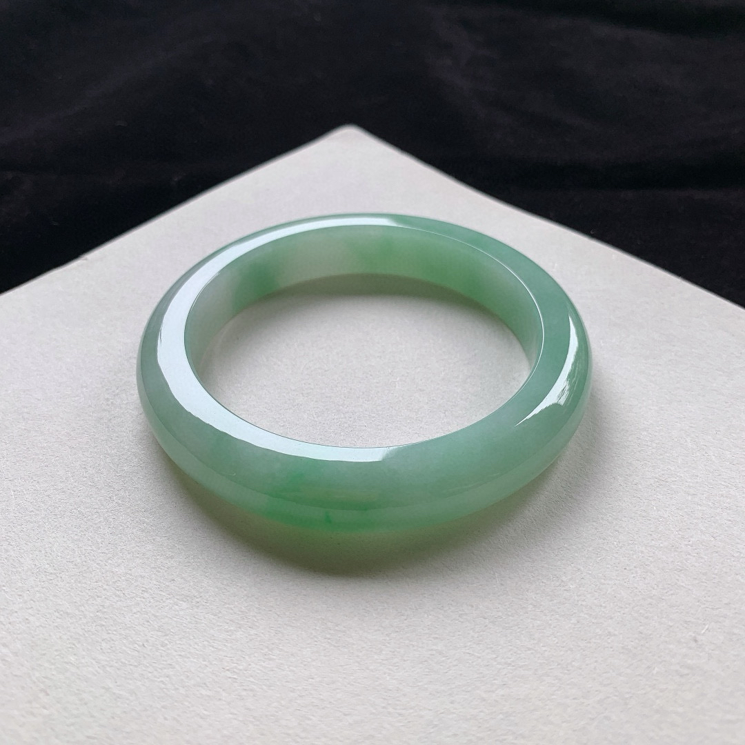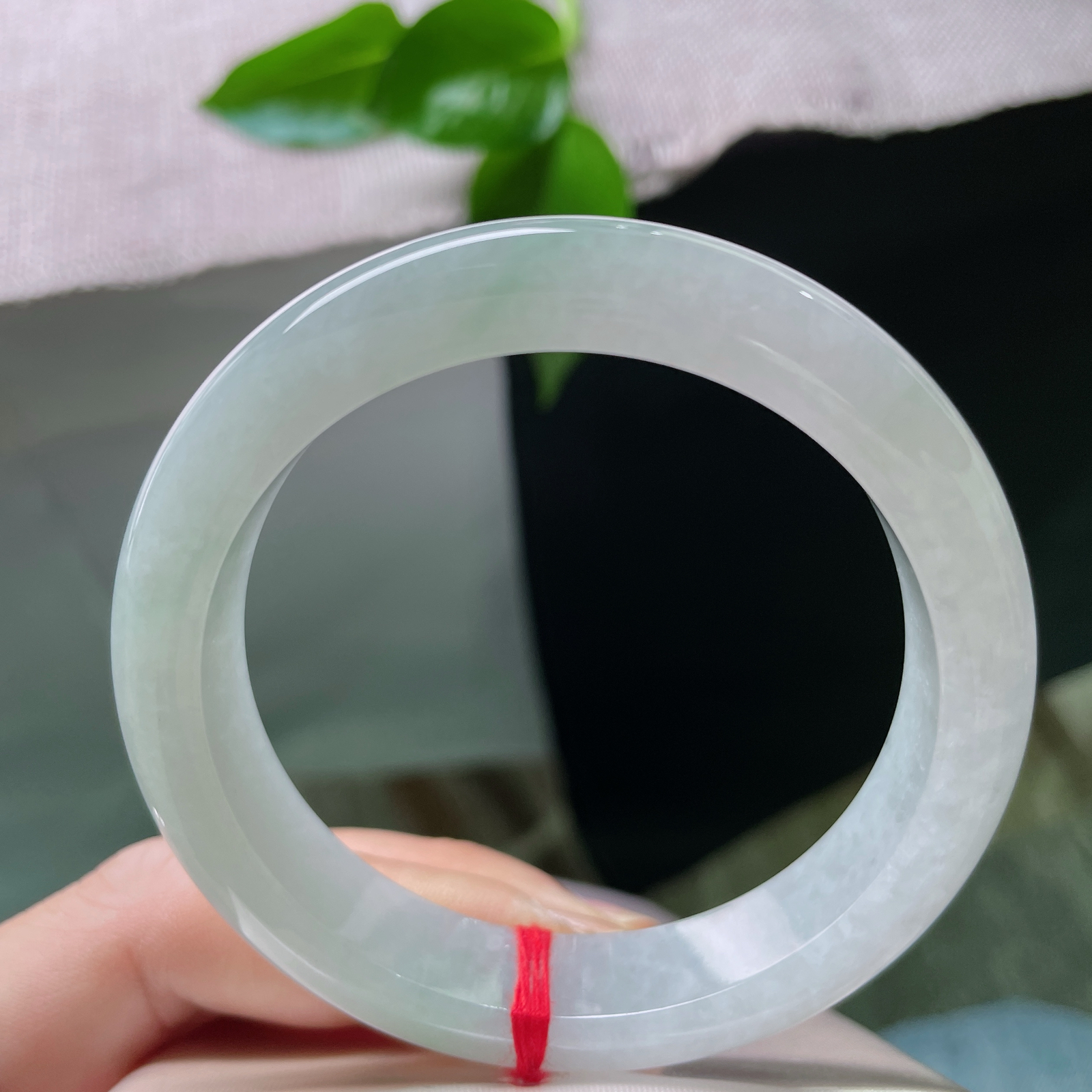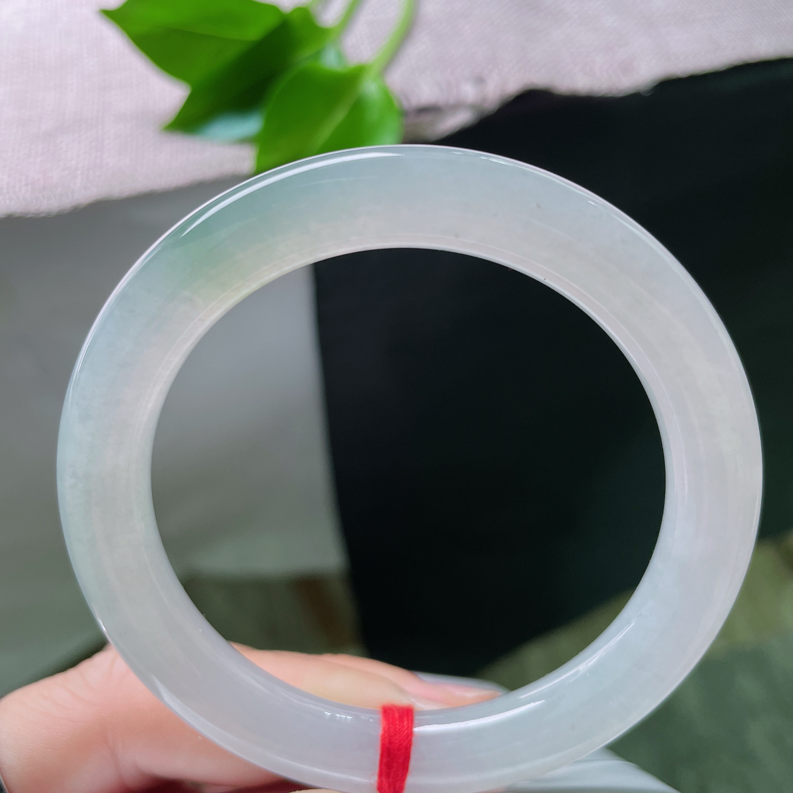 A货天然翡翠冰糯种飘花手镯59圈重量52.54 4月5日