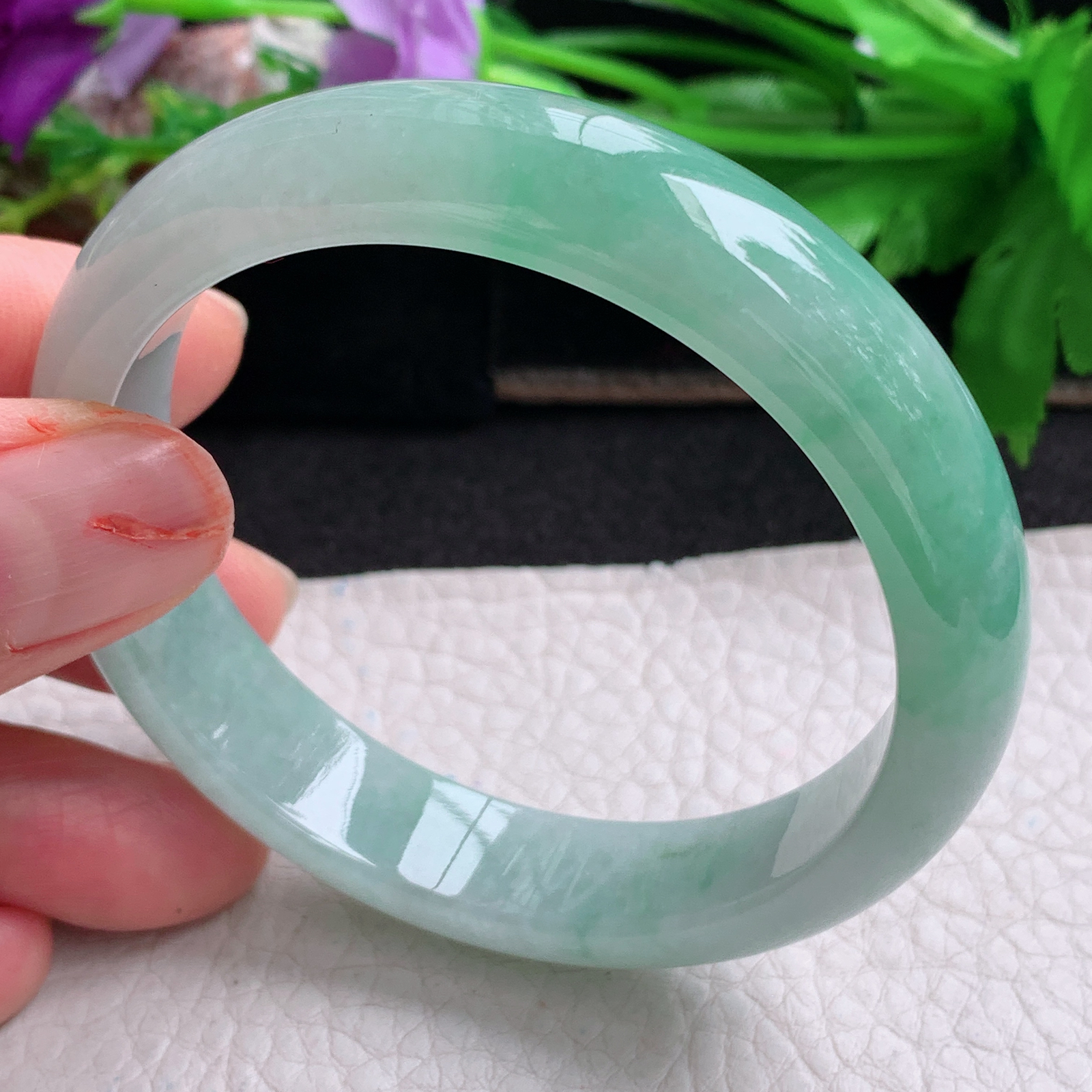 ll实拍59*13.3*8平安镯 天然翡翠a货手镯胶感飘绿正圈玉镯子