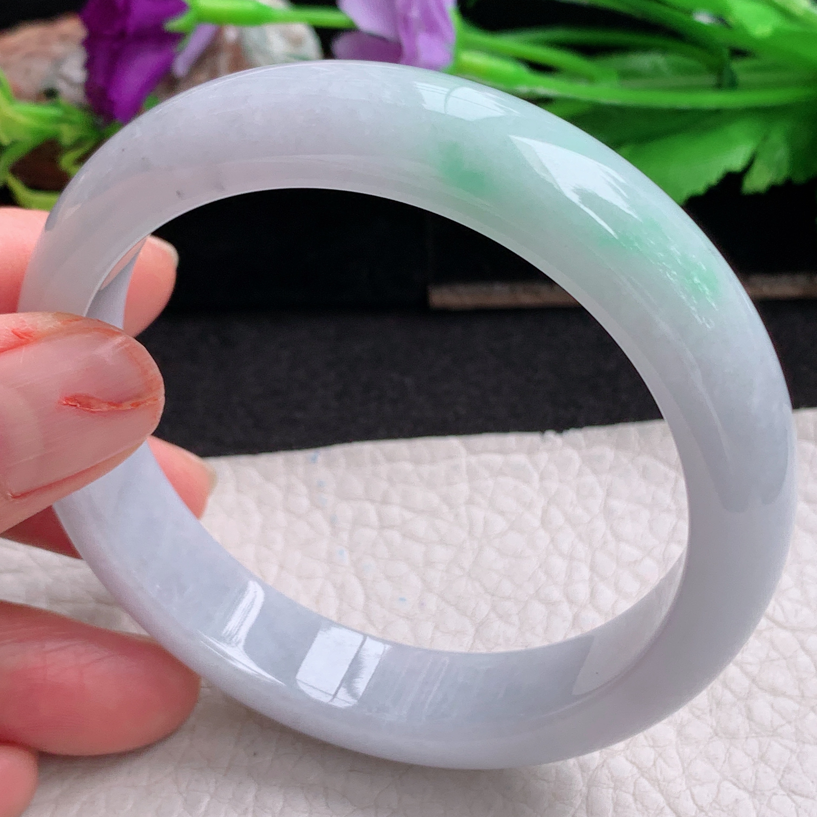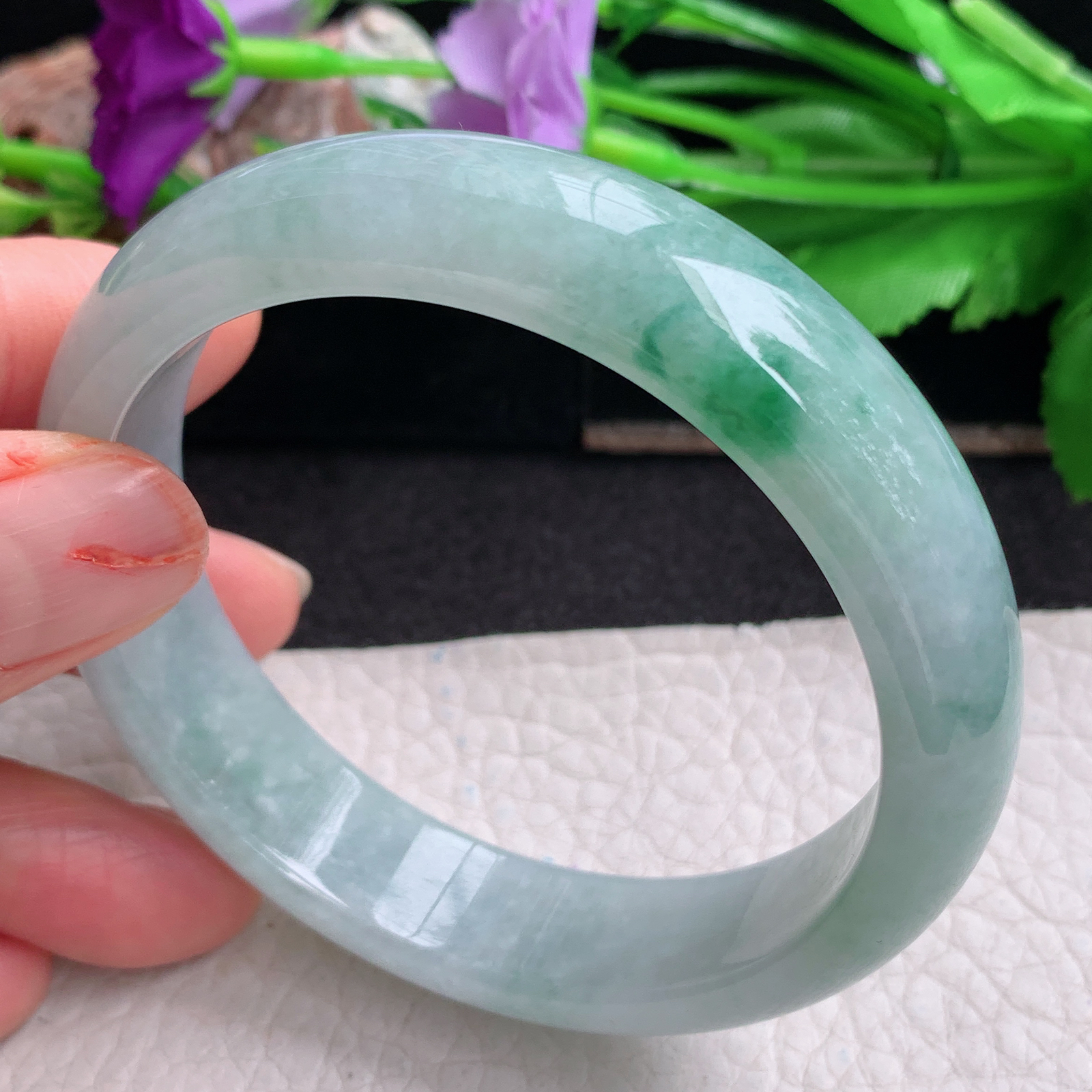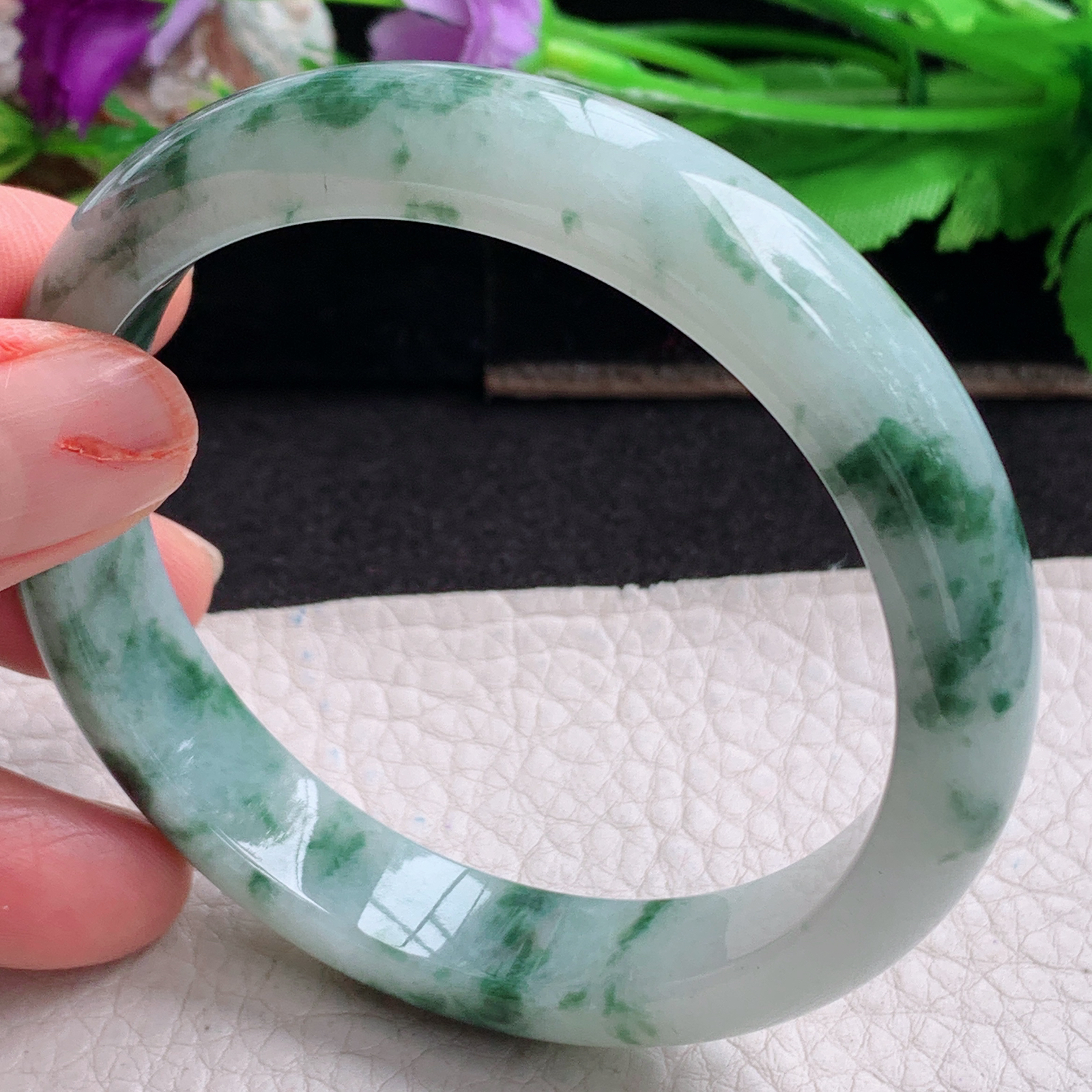 ll实拍59*12*7.5平安镯 天然翡翠a货手镯胶感飘花正圈玉镯子