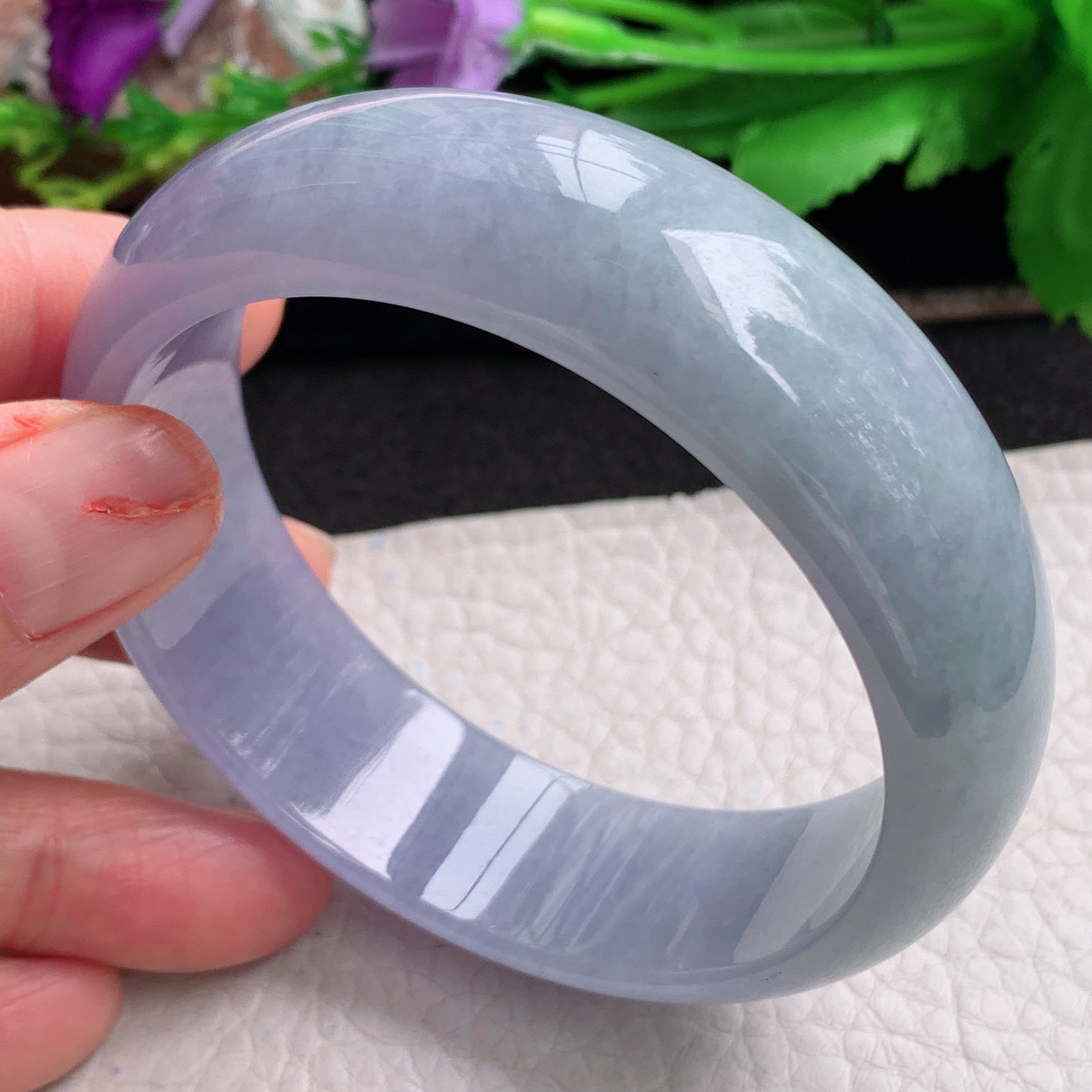 js实拍58*18.5*7.3轮胎镯 天然翡翠a货手镯胶感紫罗兰正圈玉镯子