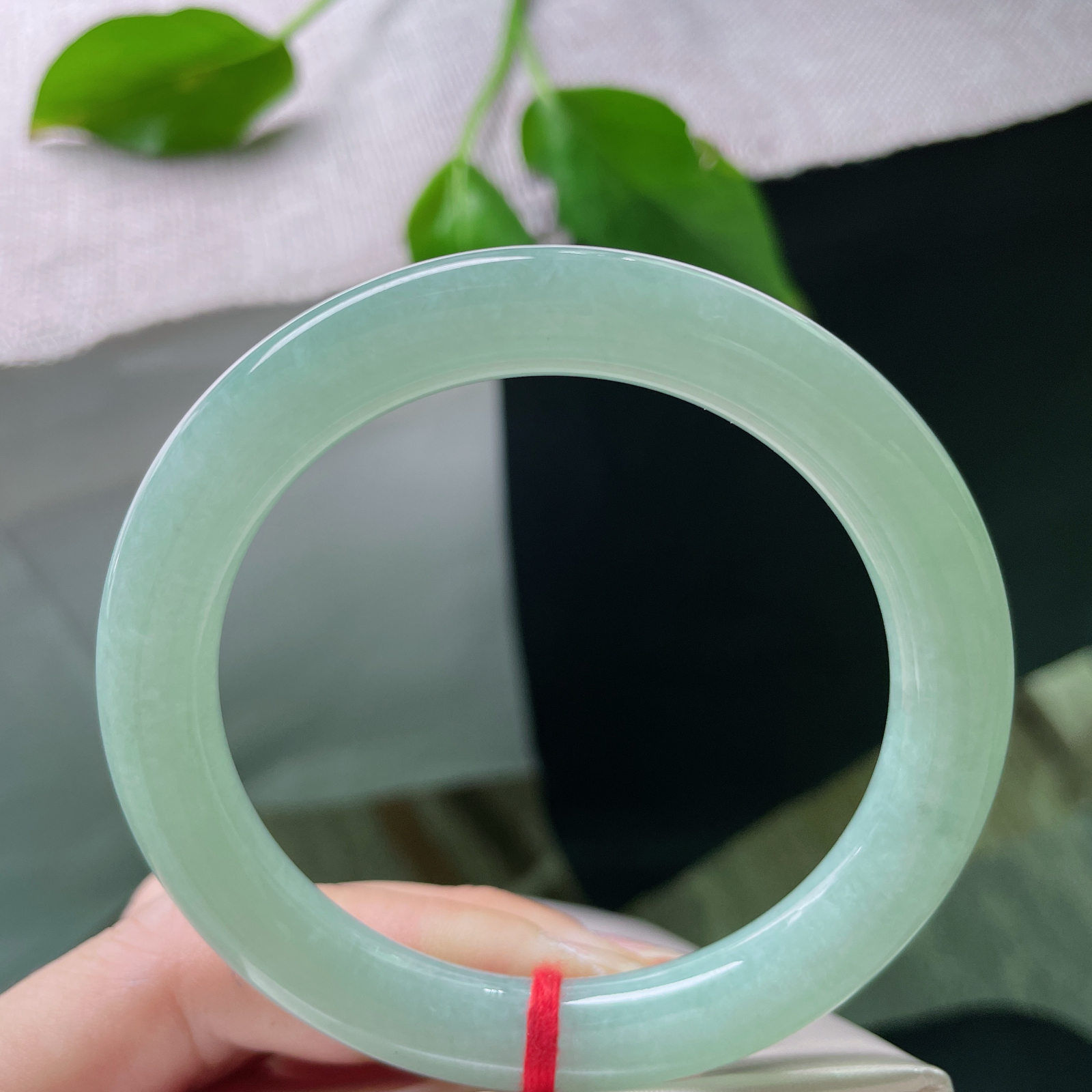 【翡翠名称】老坑种冰飘绿52.6正圈口手镯 【翡翠尺寸】52.6*10.6*8.3mm适合51.6-