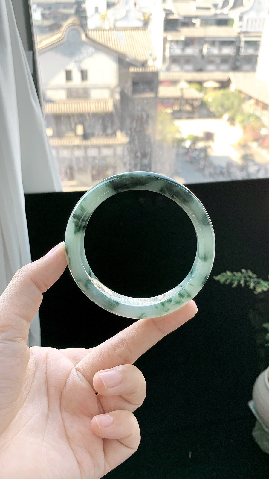 实拍A货翡翠54/49/11.5/6.3老坑冰润飘花贵妃手镯宽边玉镯平安镯美人镯
