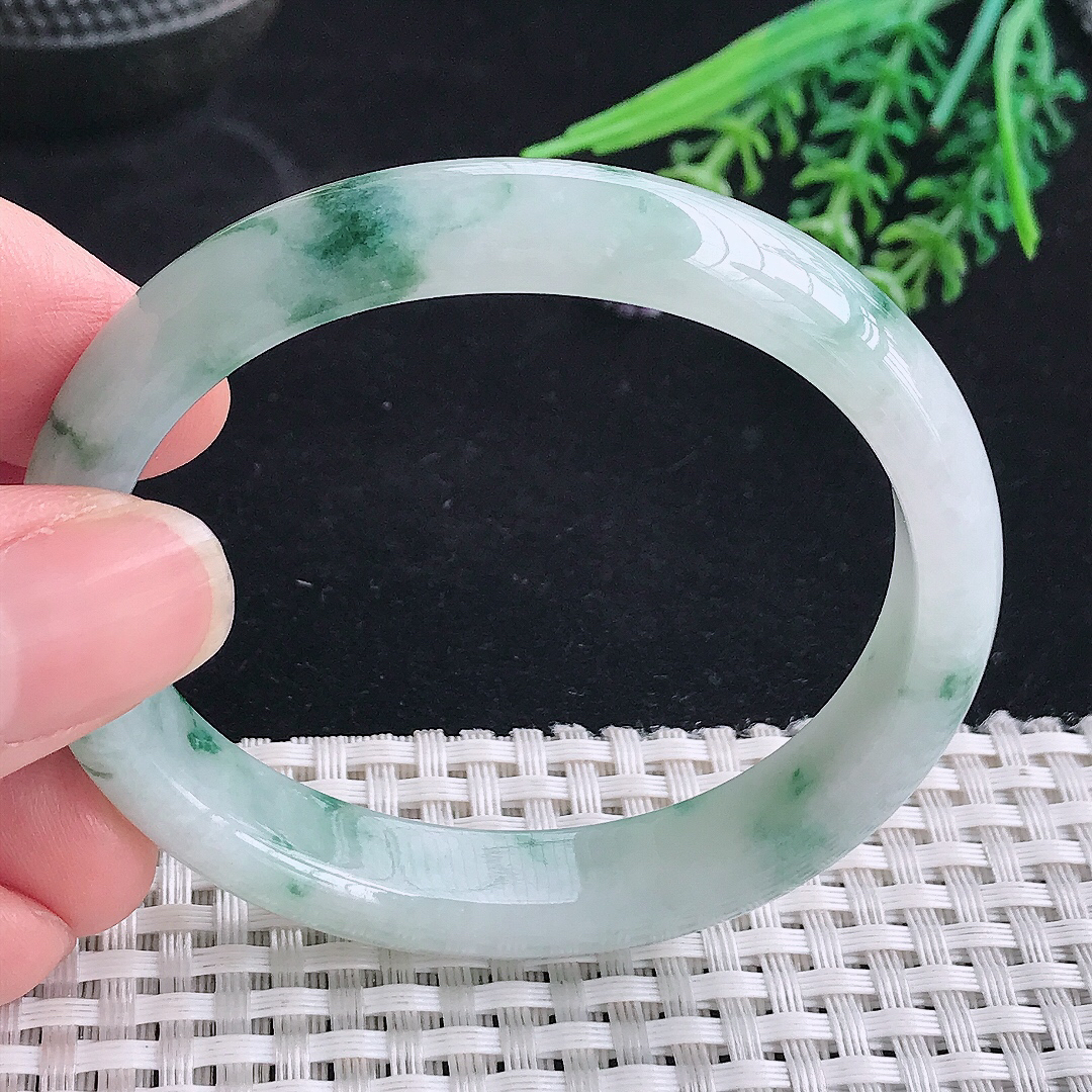 A货天然翡翠冰糯种飘花手镯59圈重量52.54 4月21日