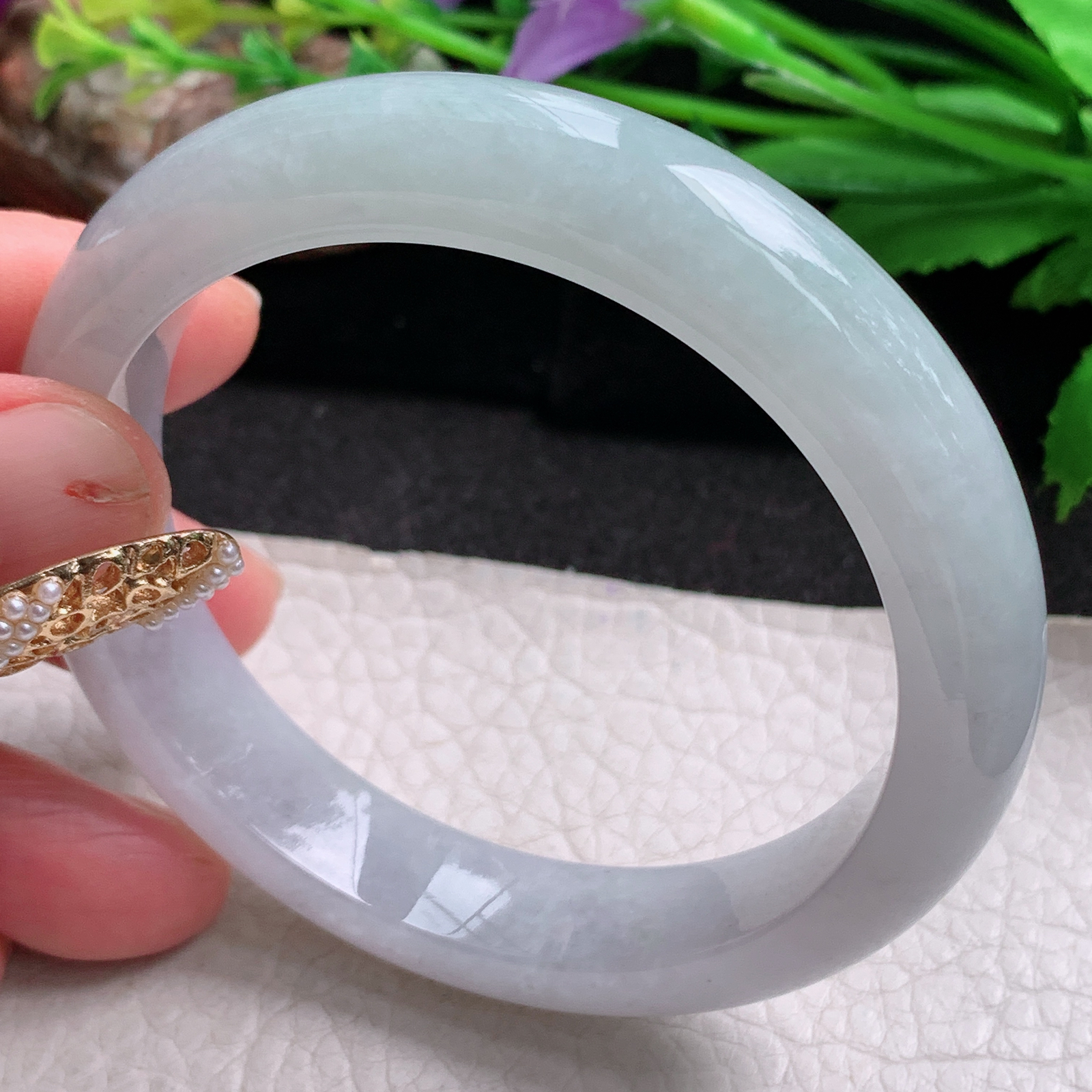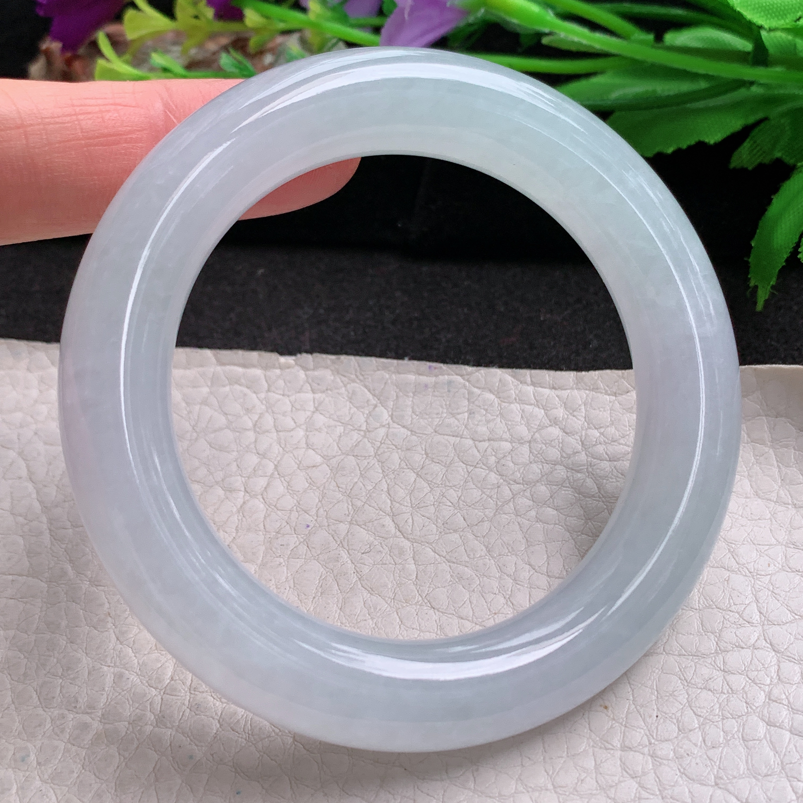 A货天然翡翠冰糯种紫罗兰手镯56-57圈重量61.38 4月22日