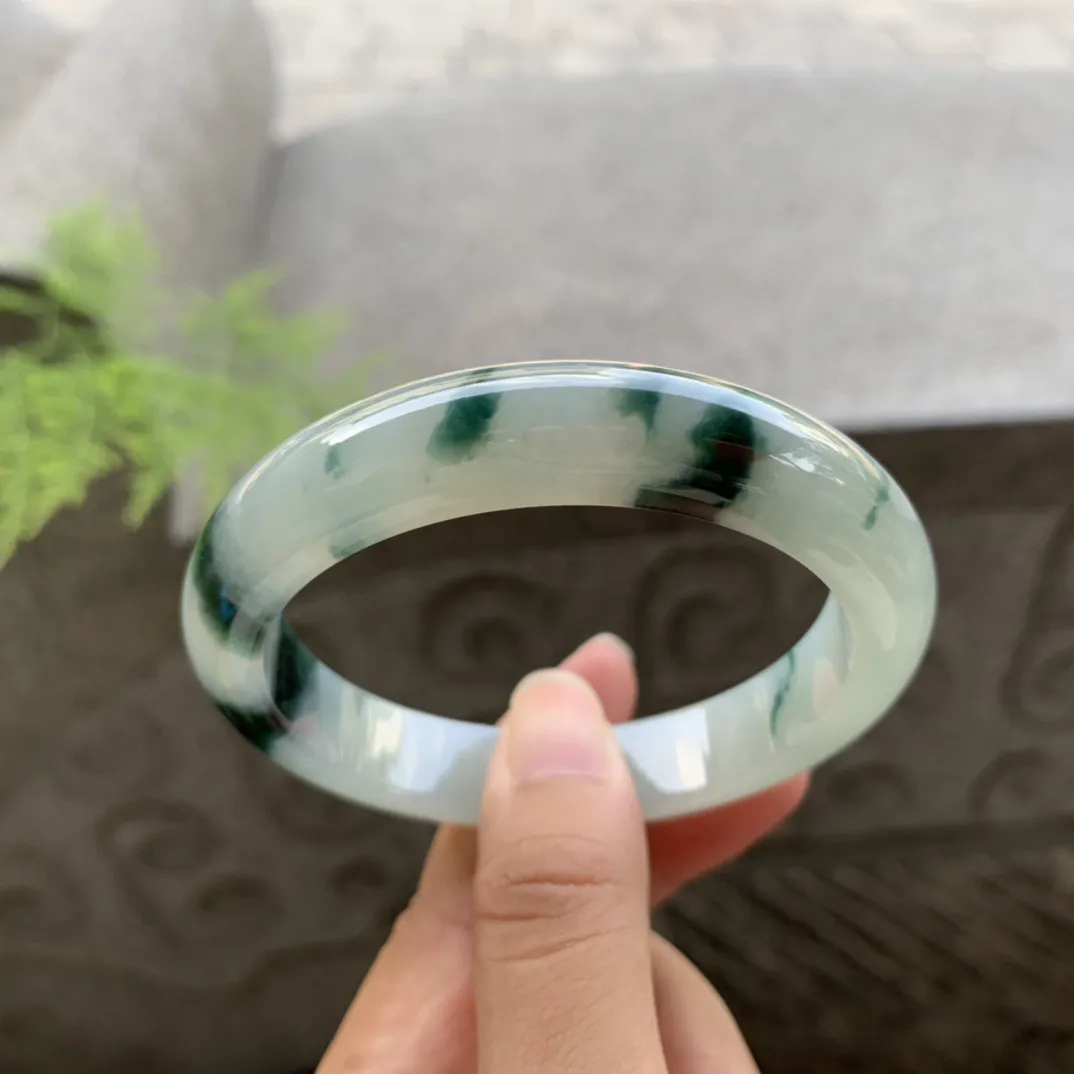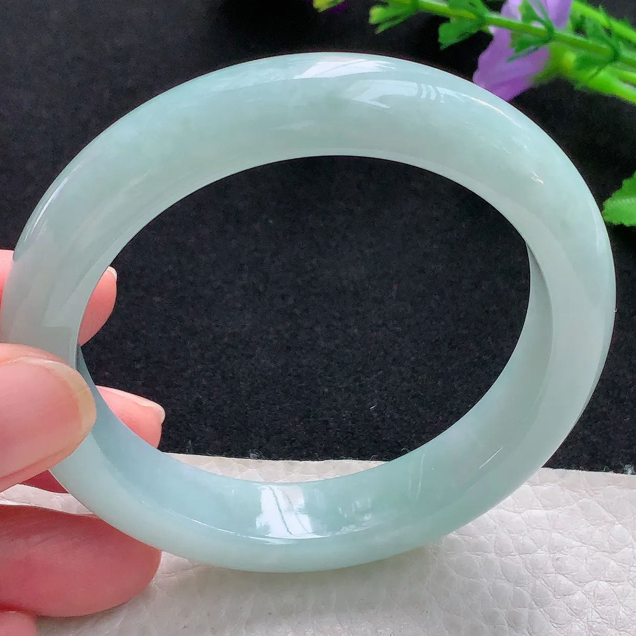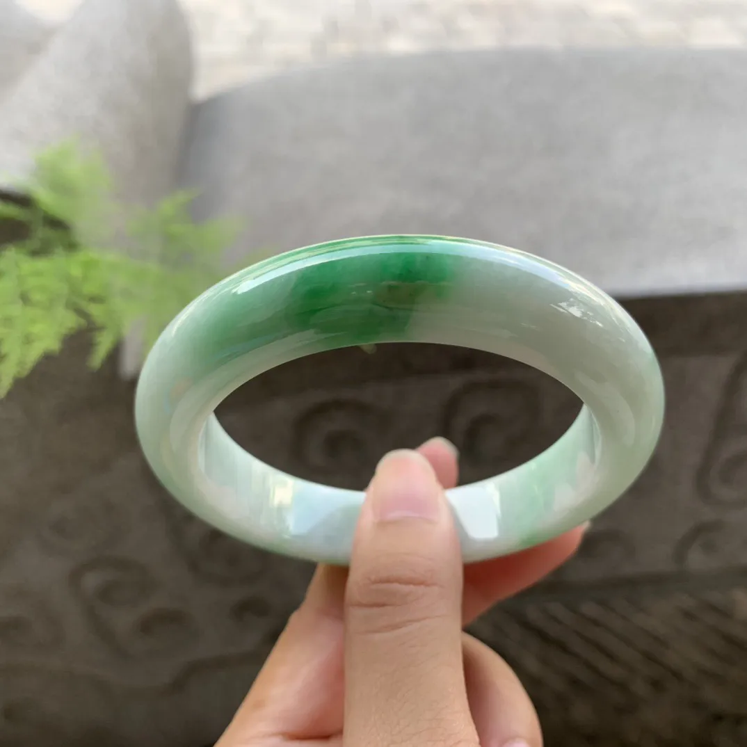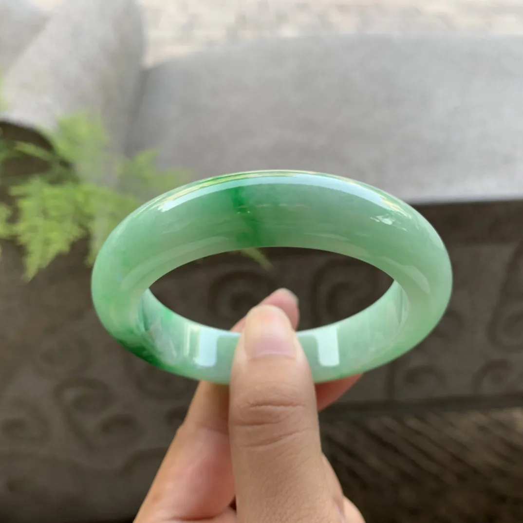 qn实拍57*12.5*6=平安镯 老坑天然翡翠浅绿厚装宽边玉手镯 珠宝玉手环