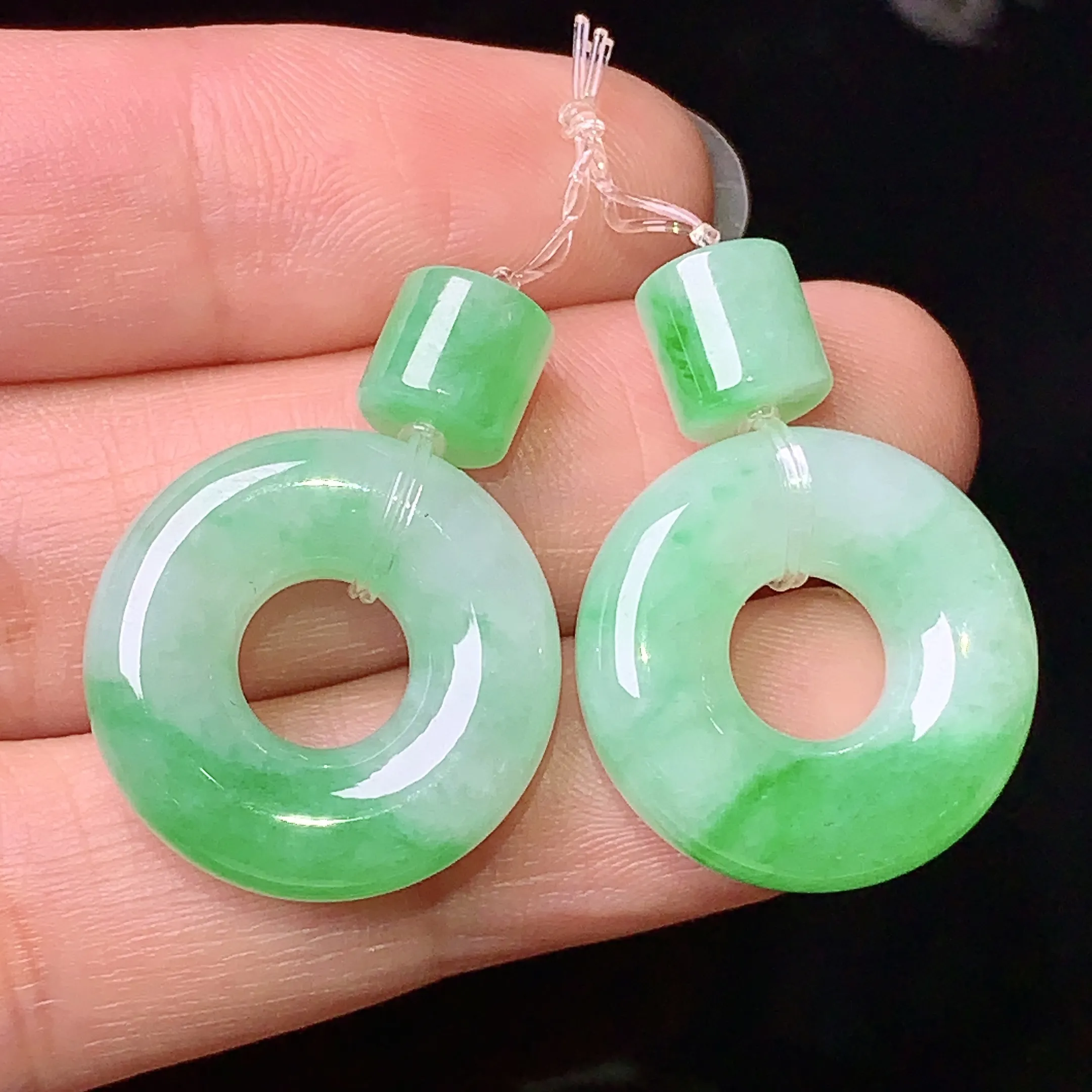 飘绿平安环一对 玉质细腻 色泽清新艳丽 整体尺寸19.2*6