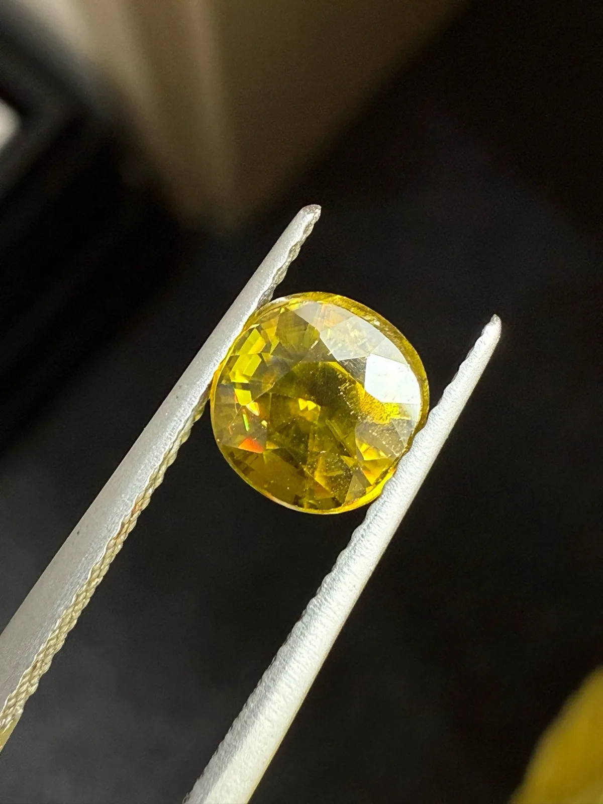 1.905克拉天然榍石戒面裸石,颜色超美,火彩超好,尺寸:7.8*7.1*4.3mm
