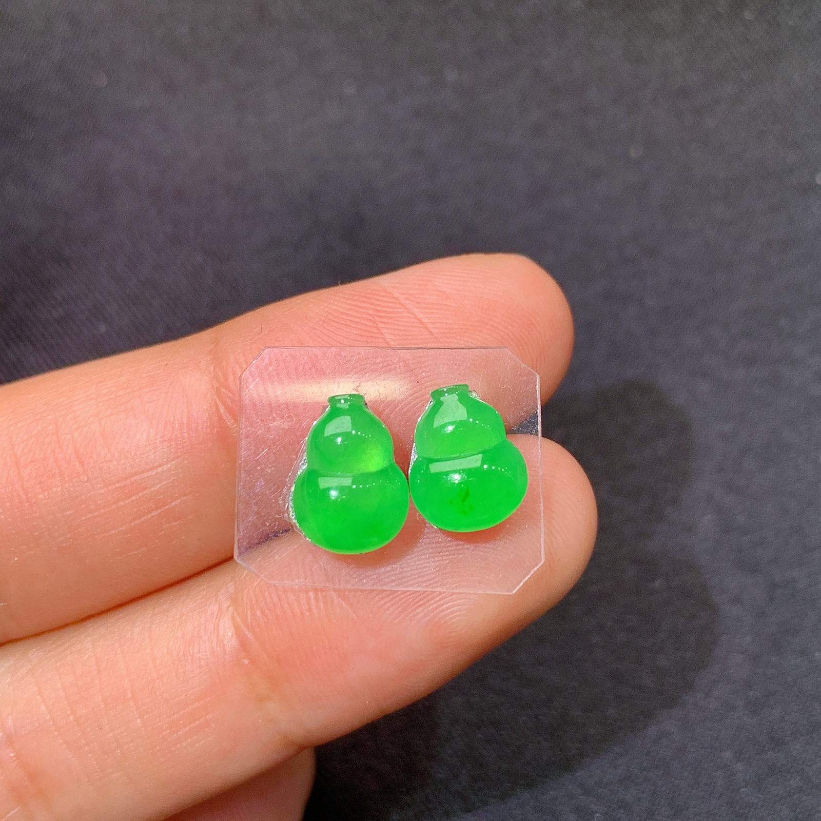 冰阳绿葫芦一对,镶嵌佳品,冰润色阳,种水足,Xg 尺寸8.5*6.8*2.6