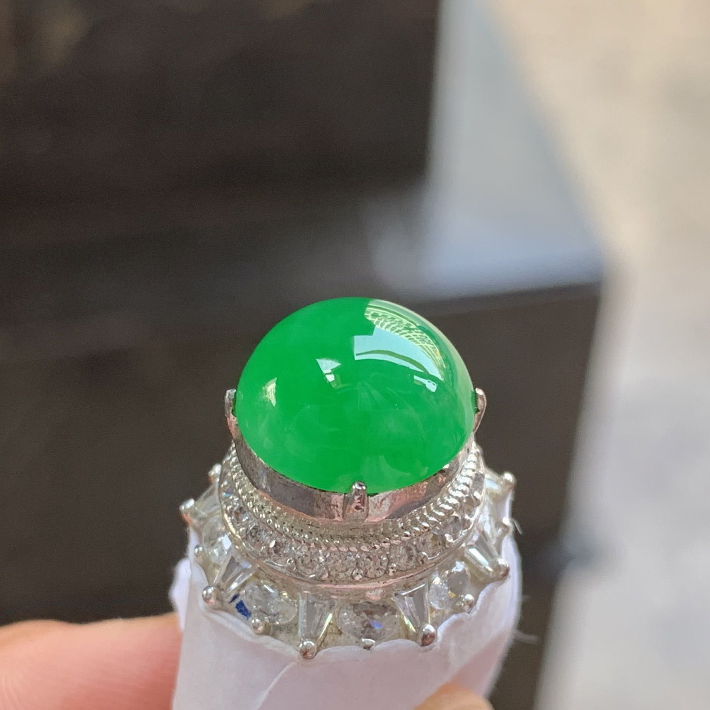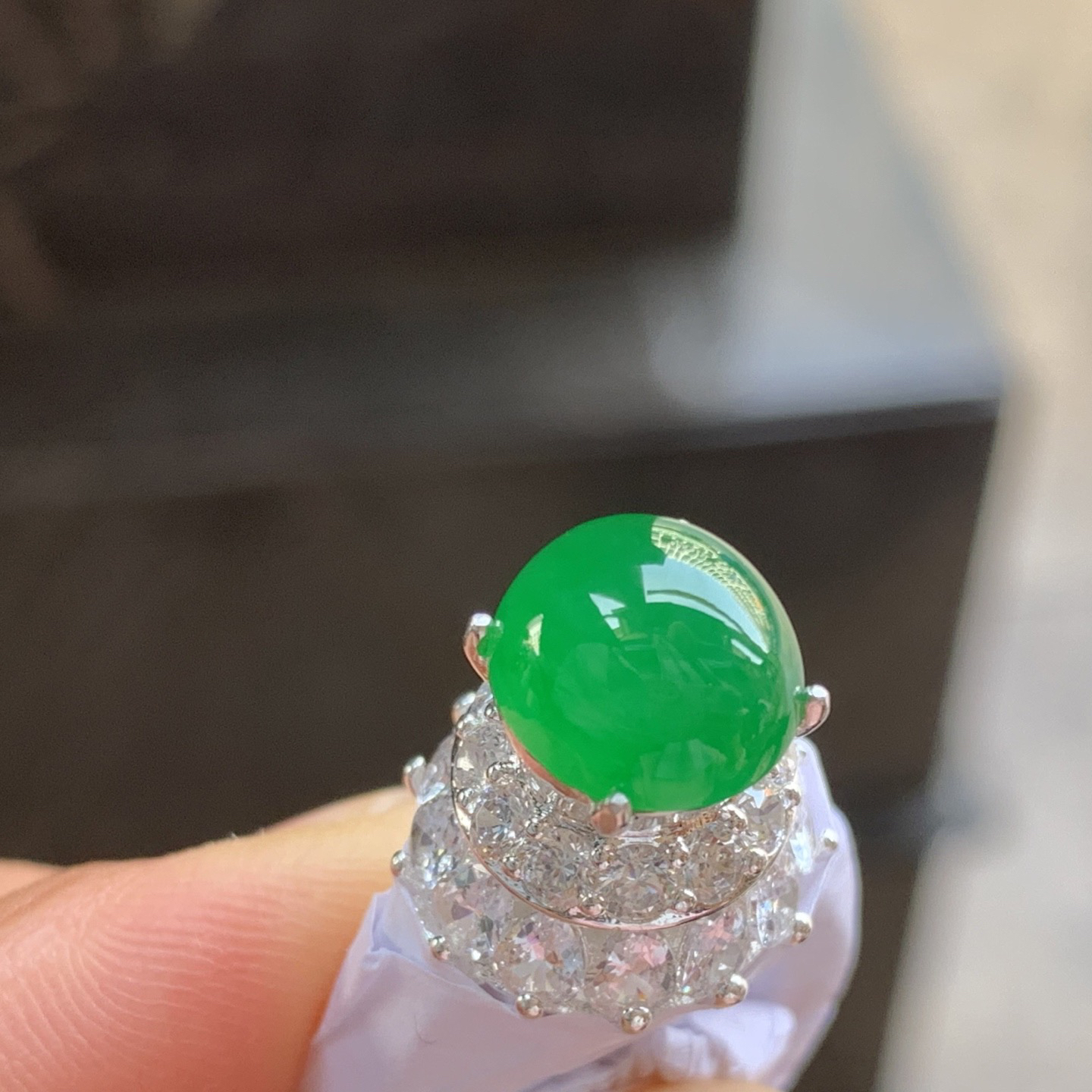 阳绿色戒面 种好水润…