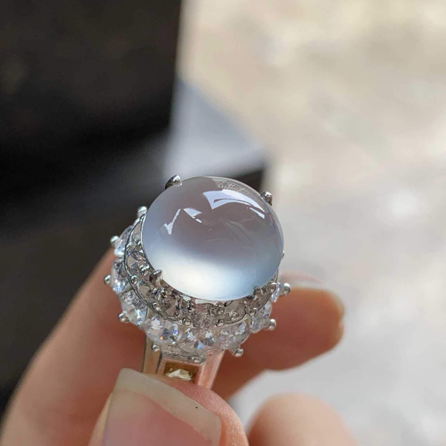️18k金镶嵌设计款冰种玻璃马鞍戒裸石11.5-4.5-4