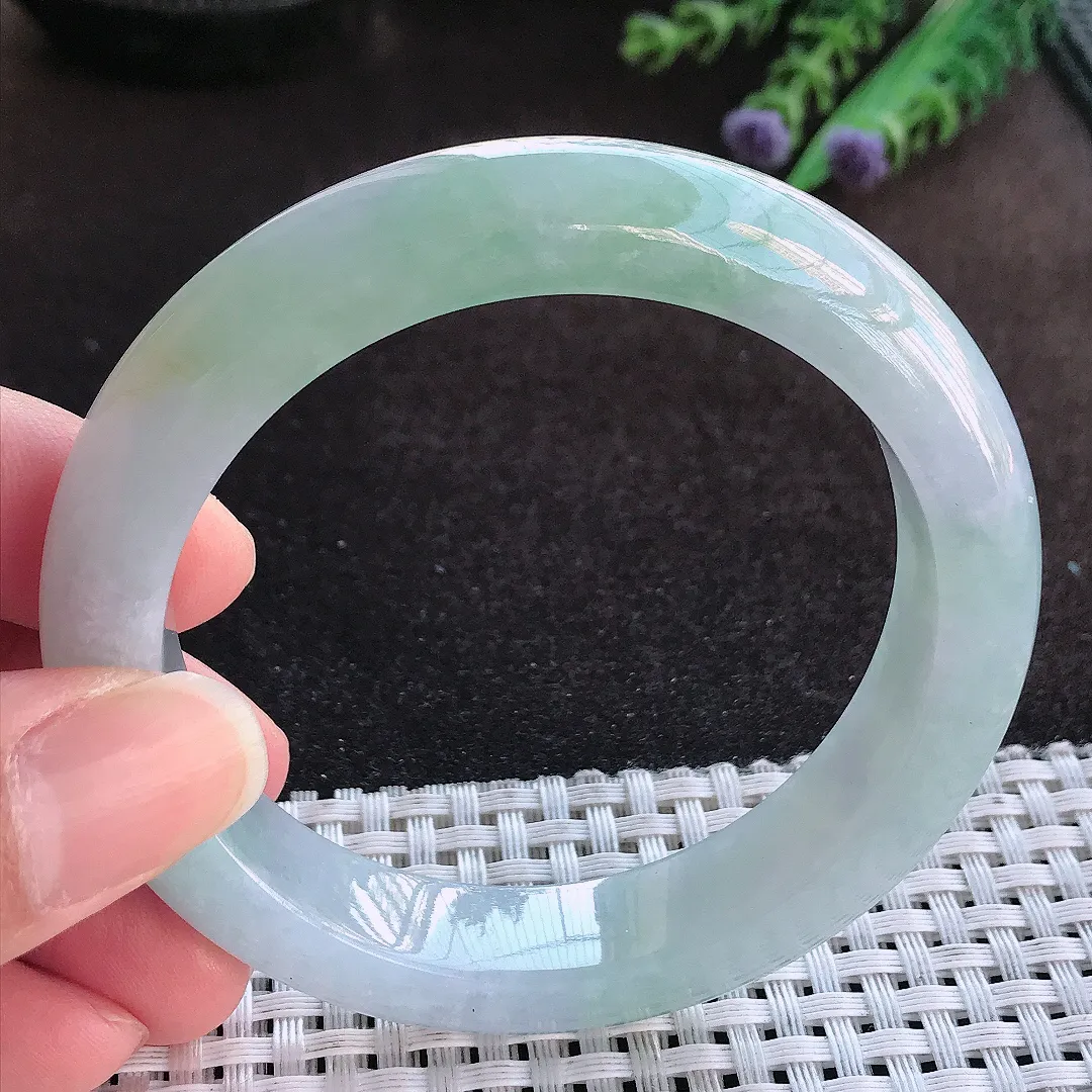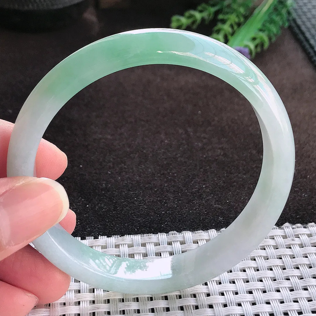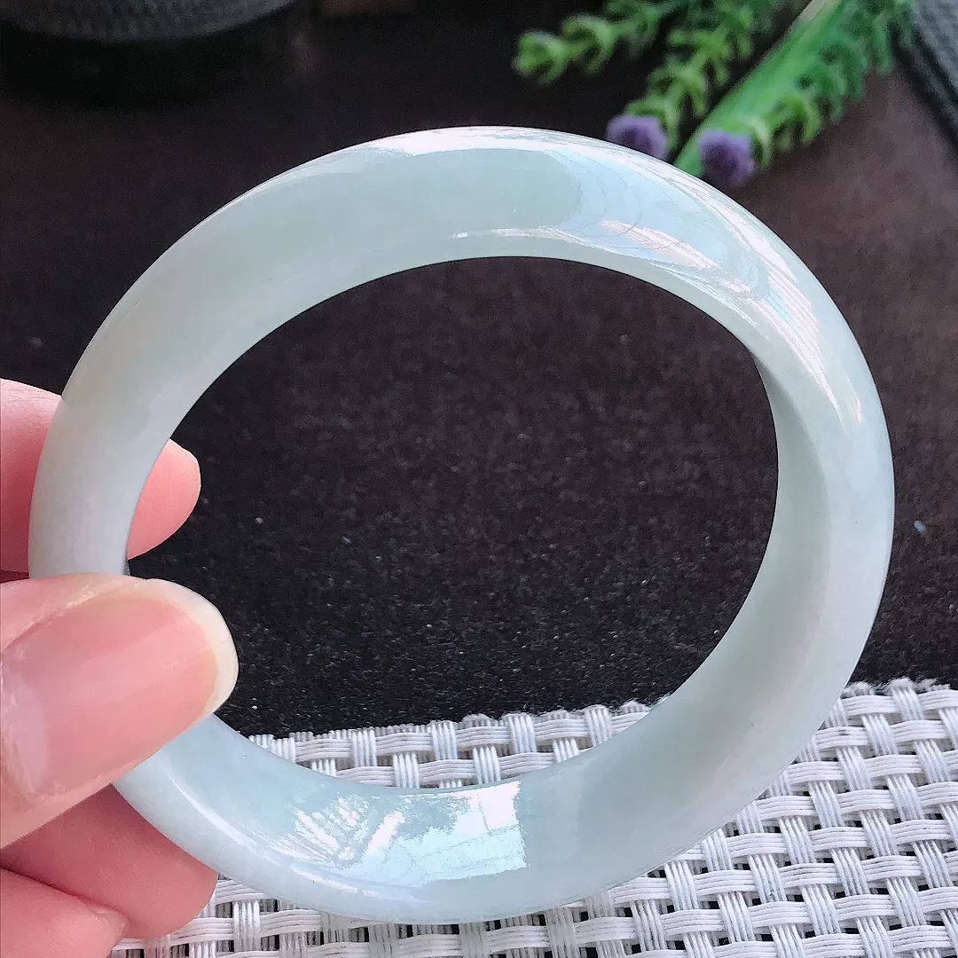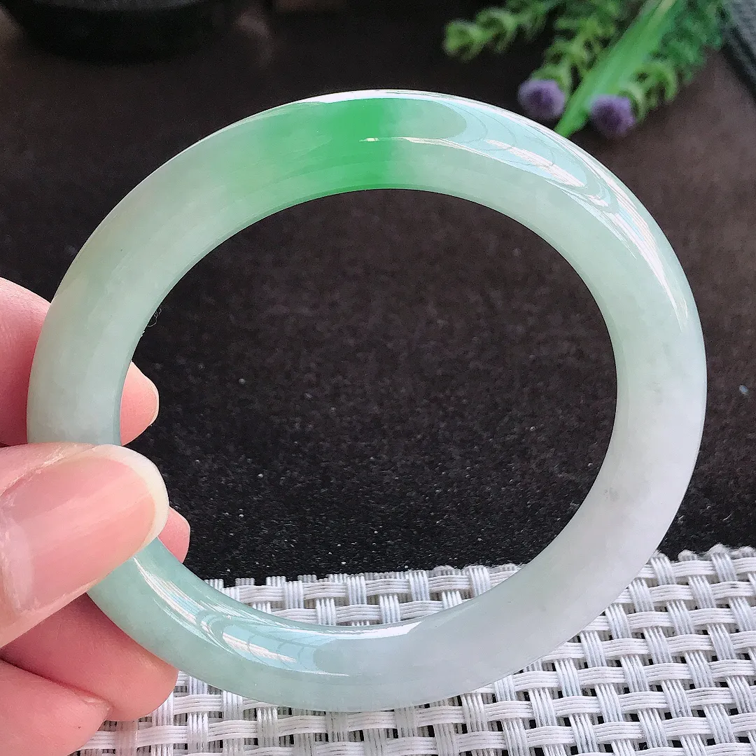 天然a货翡翠54.8/11.7/8.8老坑冰胶水灵冰晴绿手镯宽边玉手镯