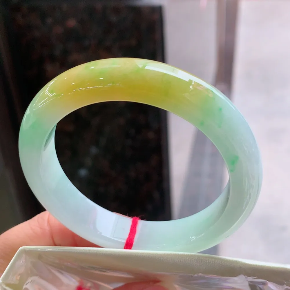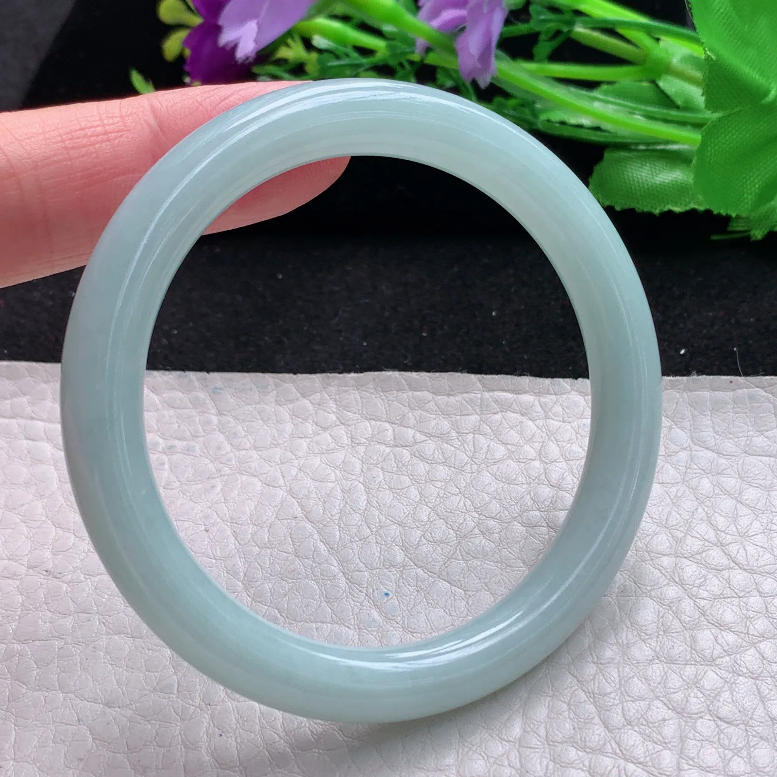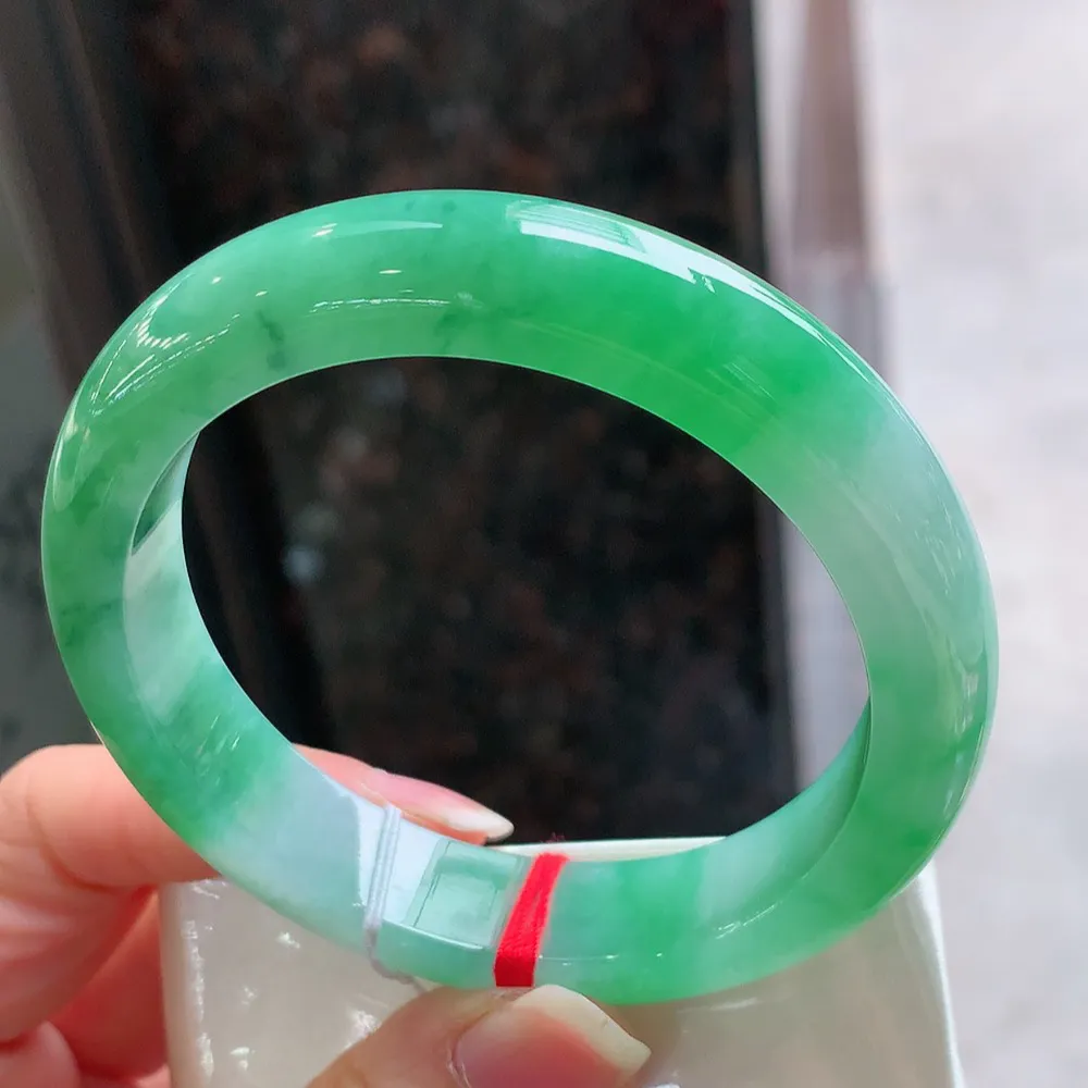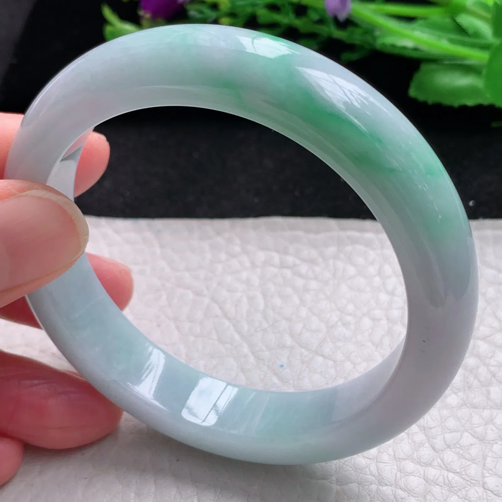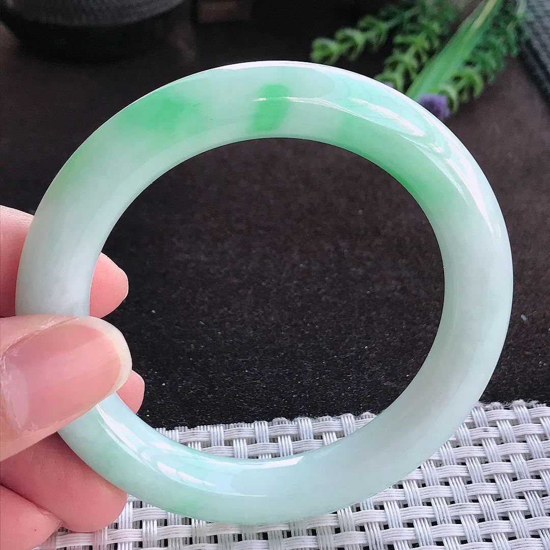 天然a货翡翠54.8/11.7/8.8老坑冰胶水灵冰晴绿手镯宽边玉手镯