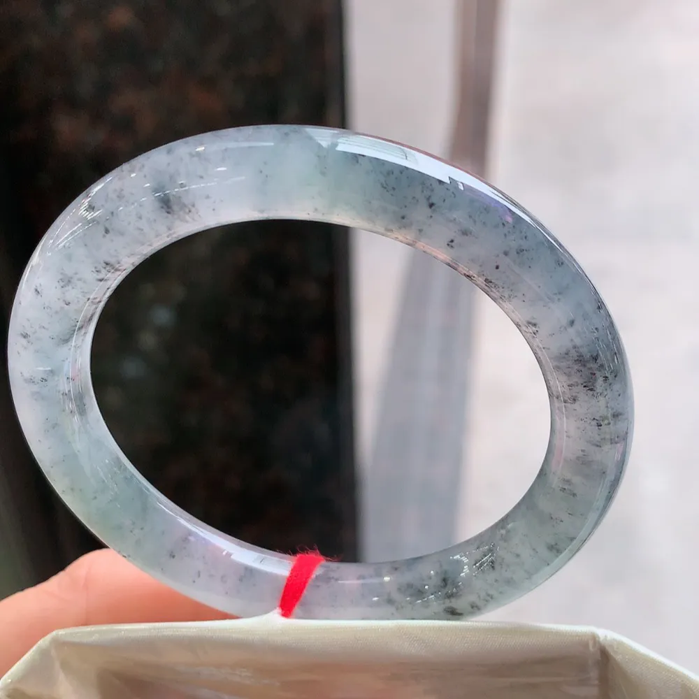 天然a货翡翠53/12.7/8.1老坑冰胶果冻飘花手镯宽边玉手镯
