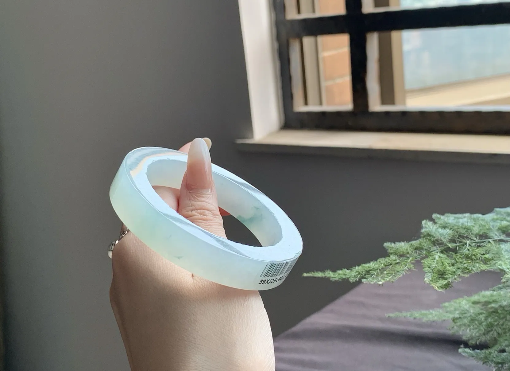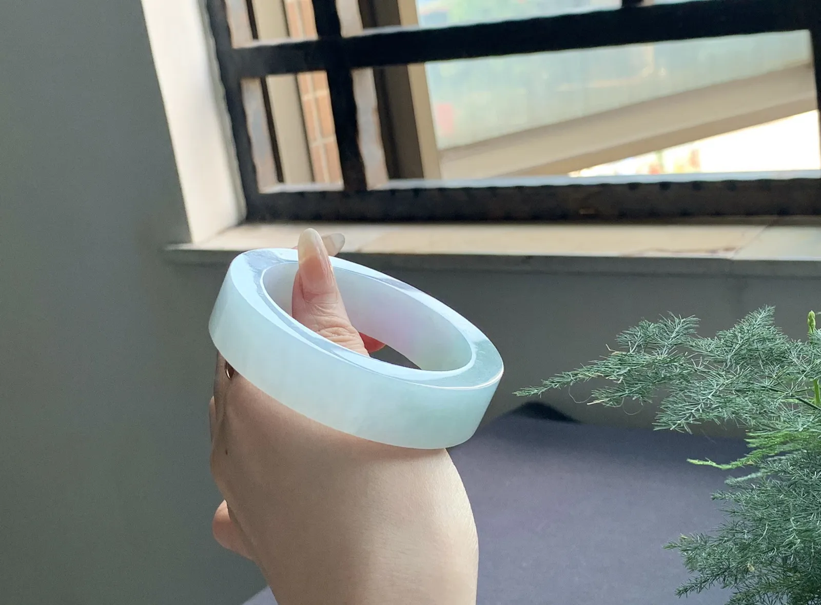 实拍A货翡翠53.5/12.1/9.2老坑秀气冰润飘绿手镯宽边翡翠玉镯女款