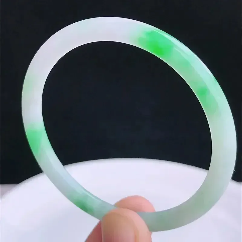 56.5圈有种有色天然翡翠A货飘绿玉手镯好种水水润手镯48.36g