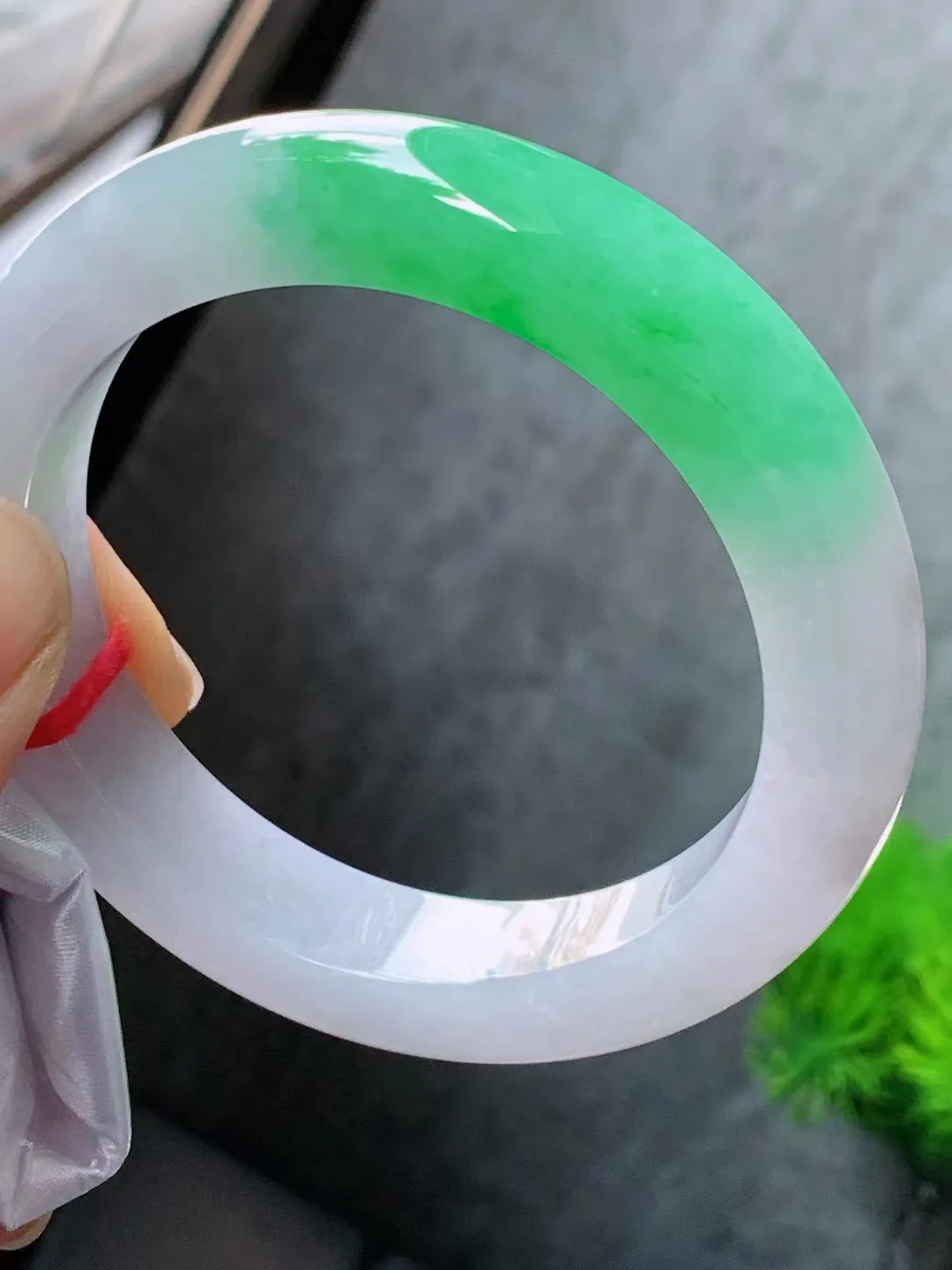 【翡翠名称】老种冰飘绿55.8正圈口手镯 【翡翠尺寸】55.8/12.3/8.6适合正圈口佩戴 【翡