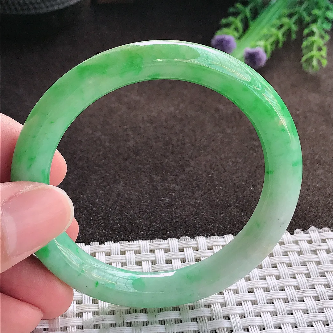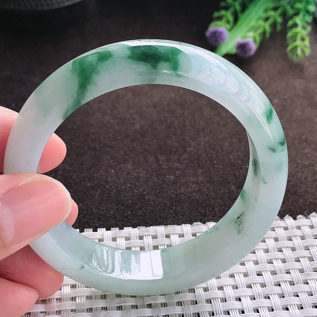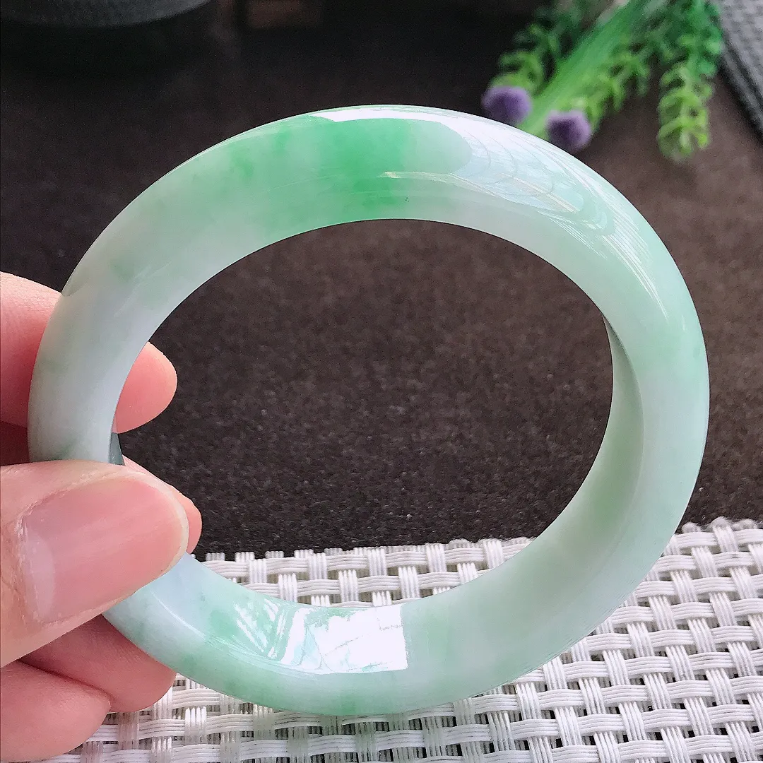 天然a货翡翠57.5/14.1/9.3老坑精美温润飘绿手镯宽边玉手镯