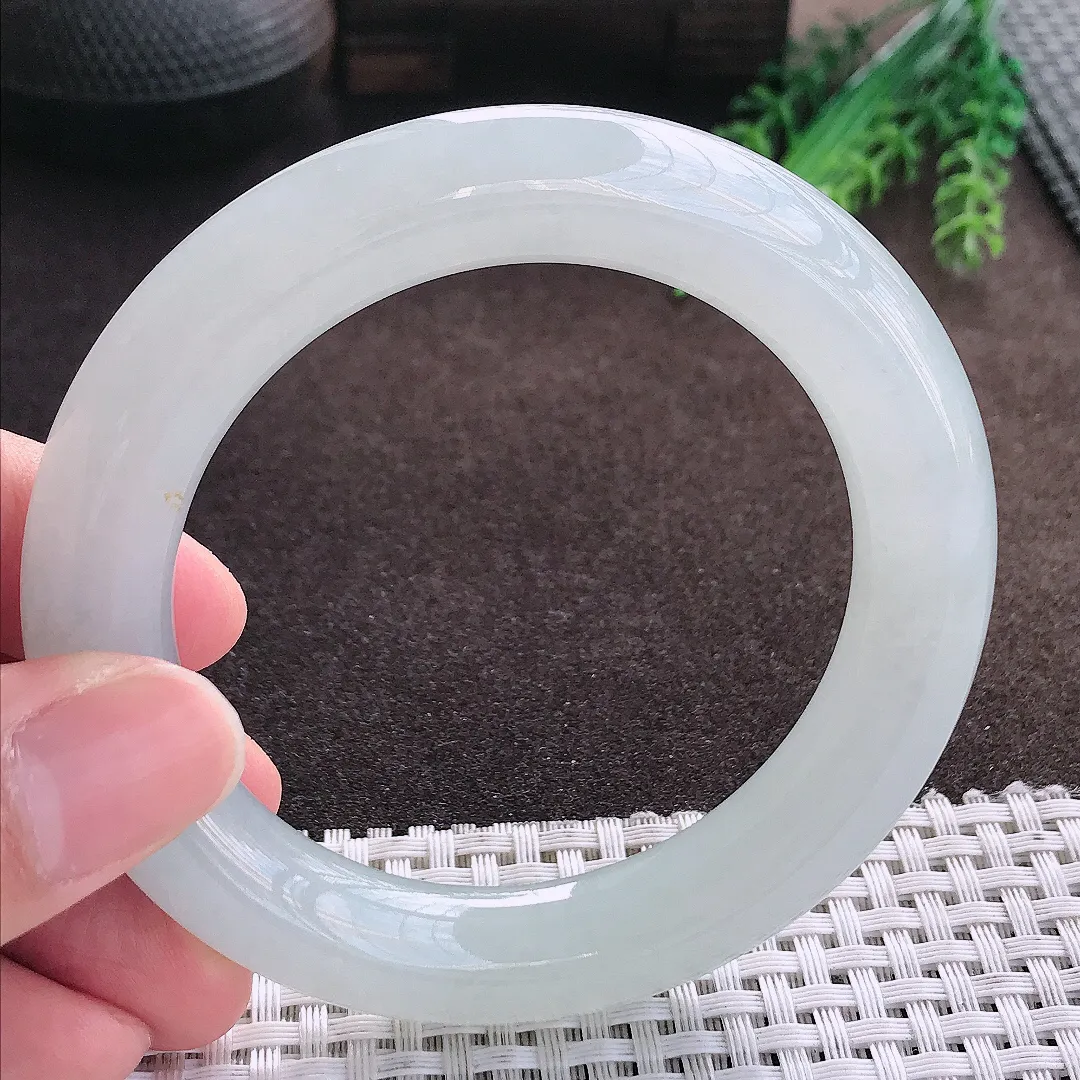 天然a货翡翠56.5/11.6老坑冰胶水灵月光白圆条手镯玉手镯