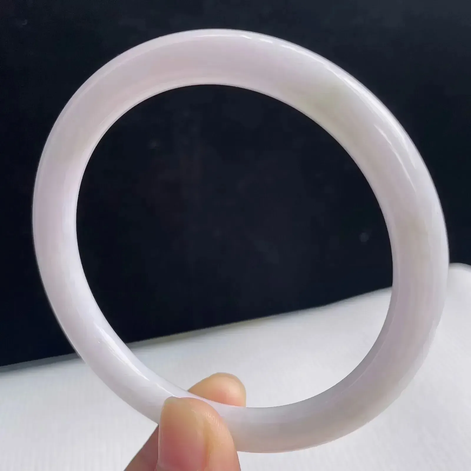 天然翡翠A货淡紫罗兰好种水58mm正圈手镯57.22克