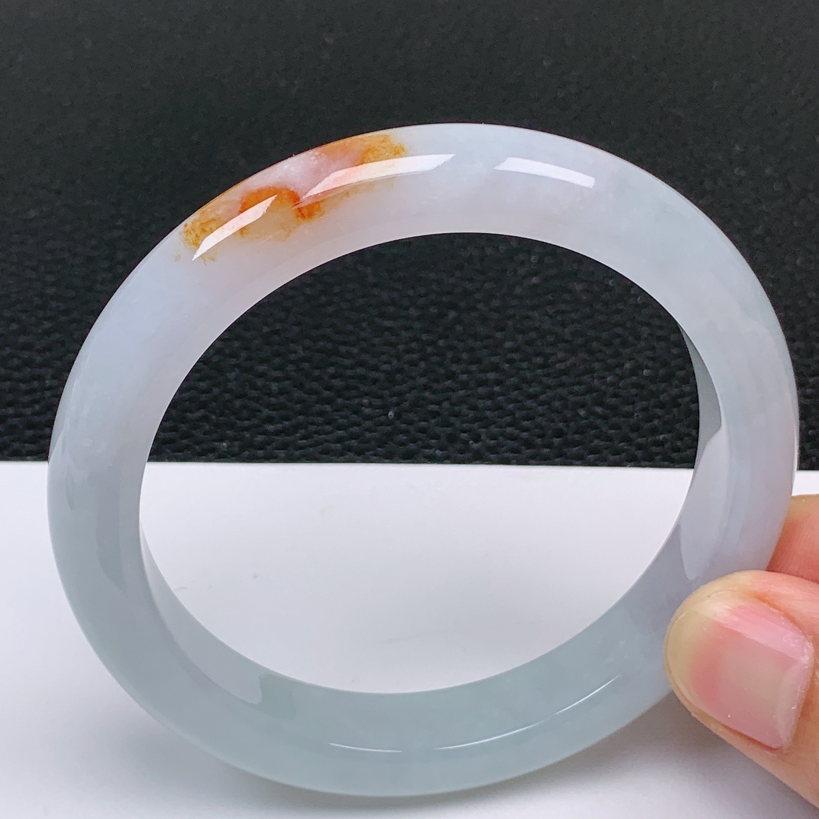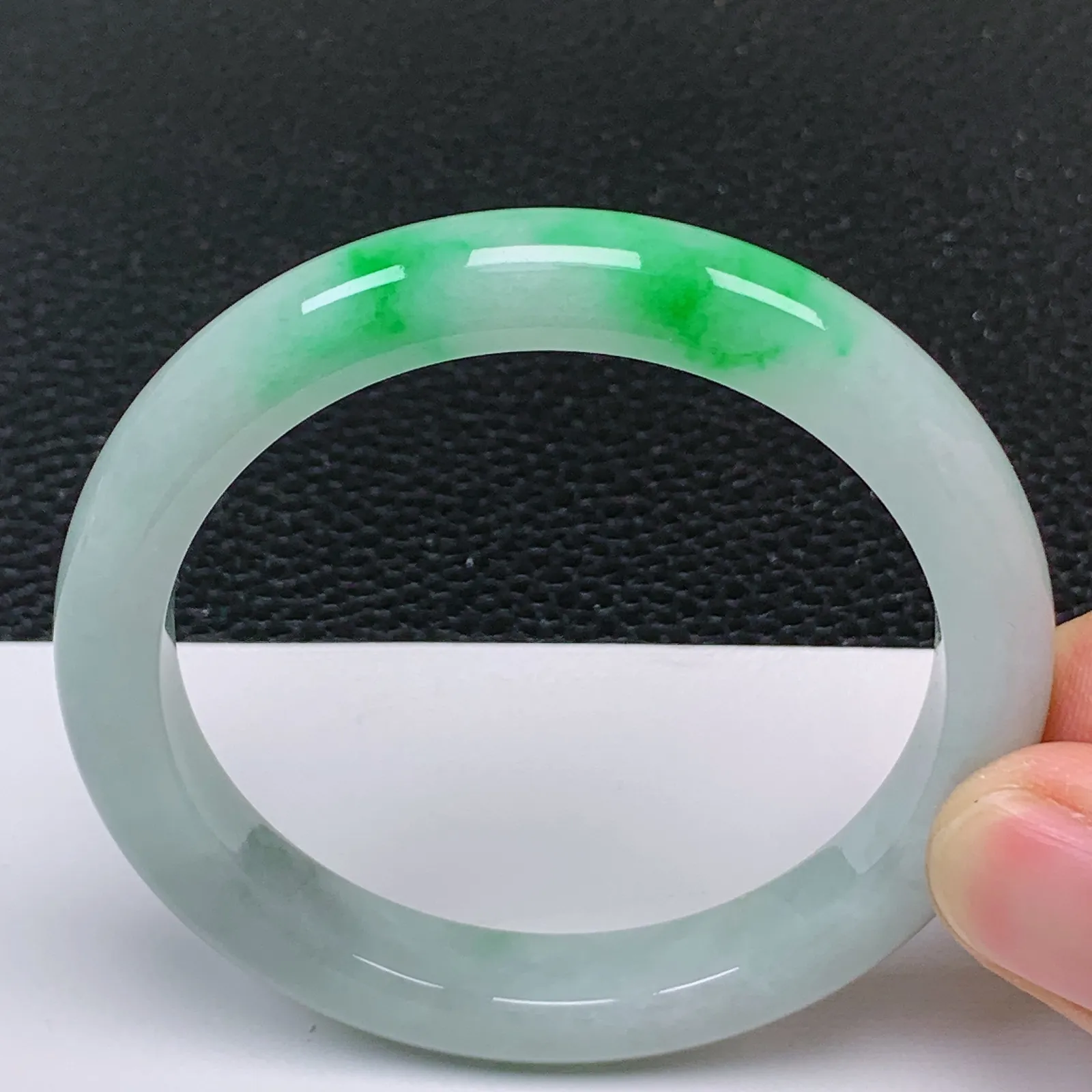 天然A货翡翠53/14/8.3老坑精美温润飘花手镯宽边玉镯
