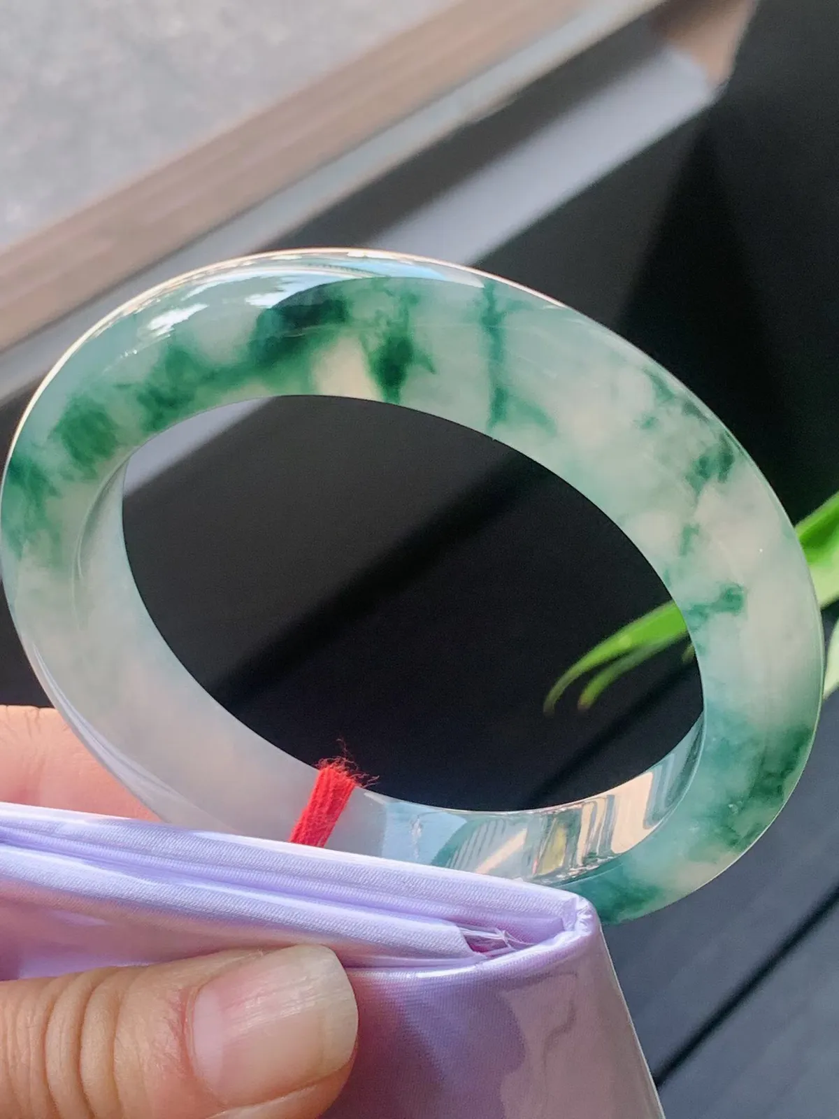 z自然光55*12.8*8.8平安镯 缅甸翡翠A货淡春带彩宽边玉手镯玉手环