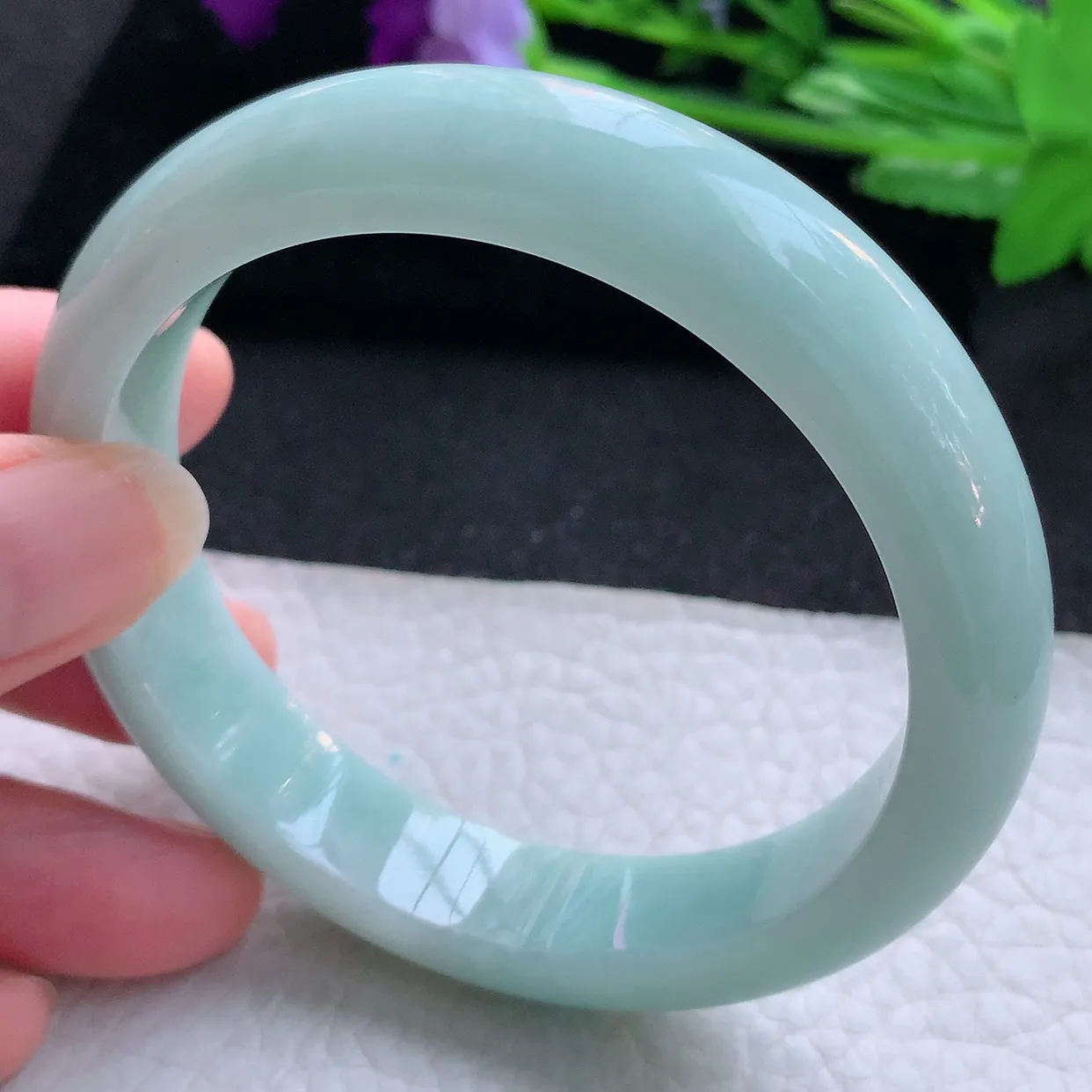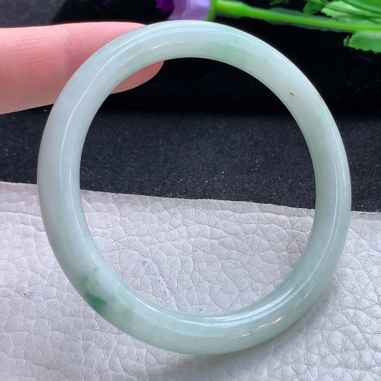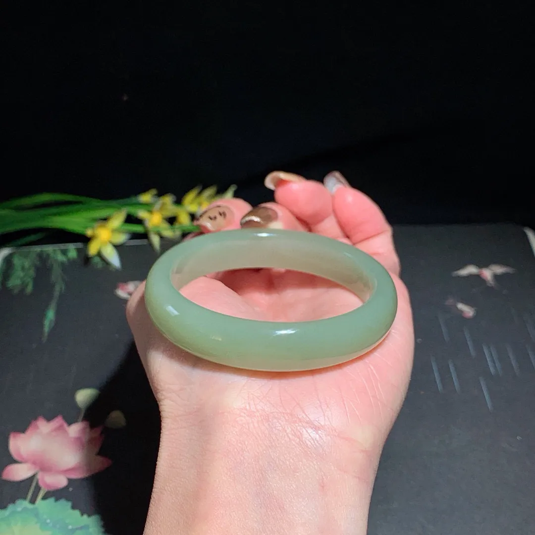 和田玉53圈口清水色手镯!晴水色!玉质细腻油润 底色纯净 无裂无黑 脂粉好,品质好!