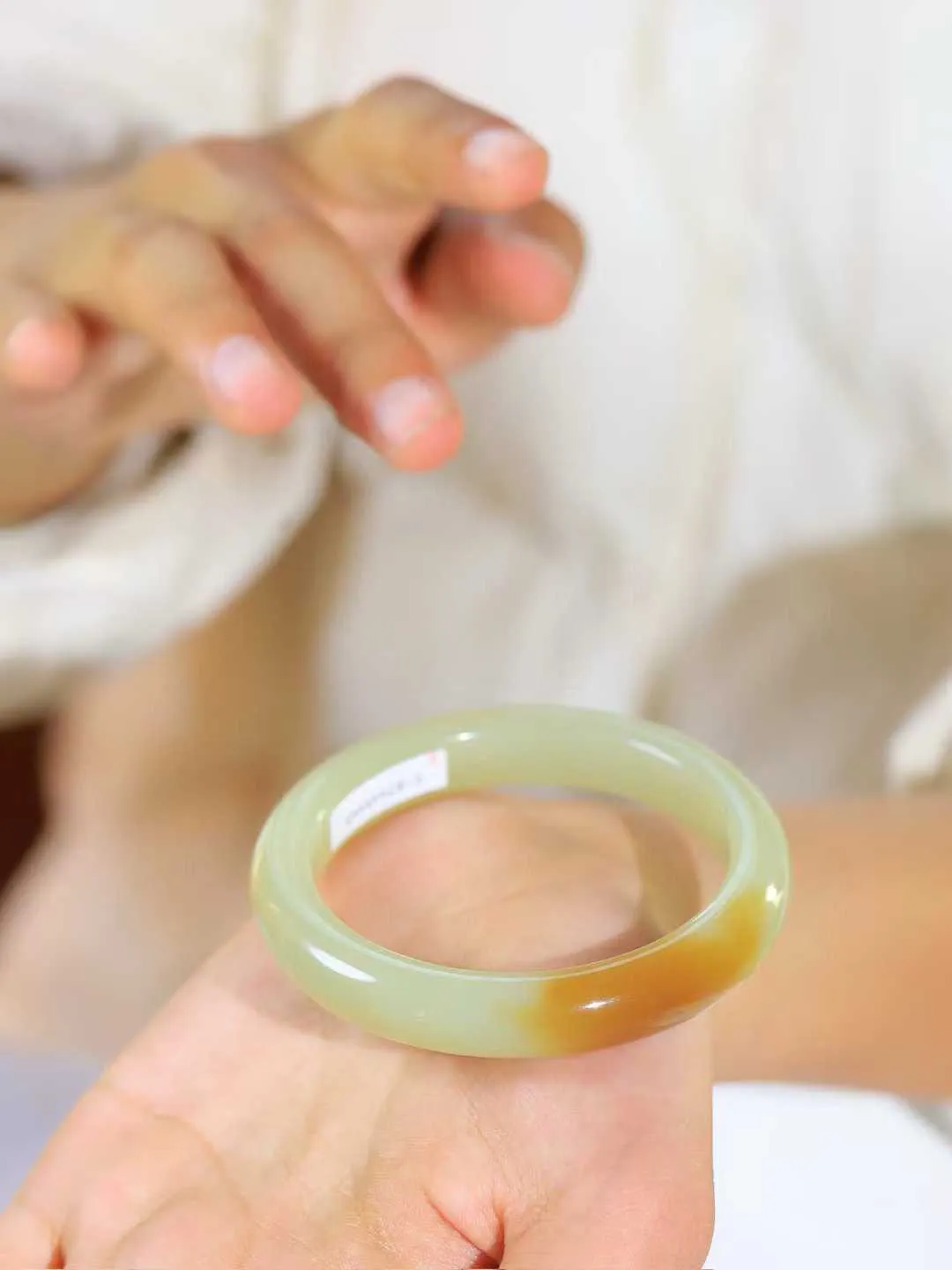 【暖玉生香·手镯】 精品和田玉糖青白玉手镯,质地油润细腻,色泽高贵典雅,镯型古朴典雅。在诗情画意