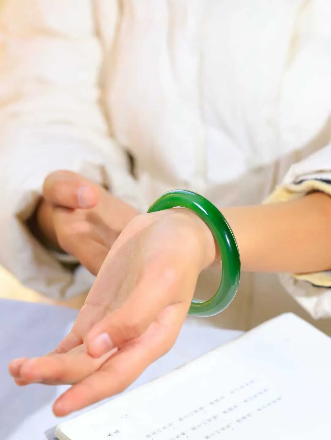 【温润如心.镯】 收藏级臻品和田玉碧玉手镯,精选上等碧玉料,色泽清透,质地细腻。佩戴它,感受千年