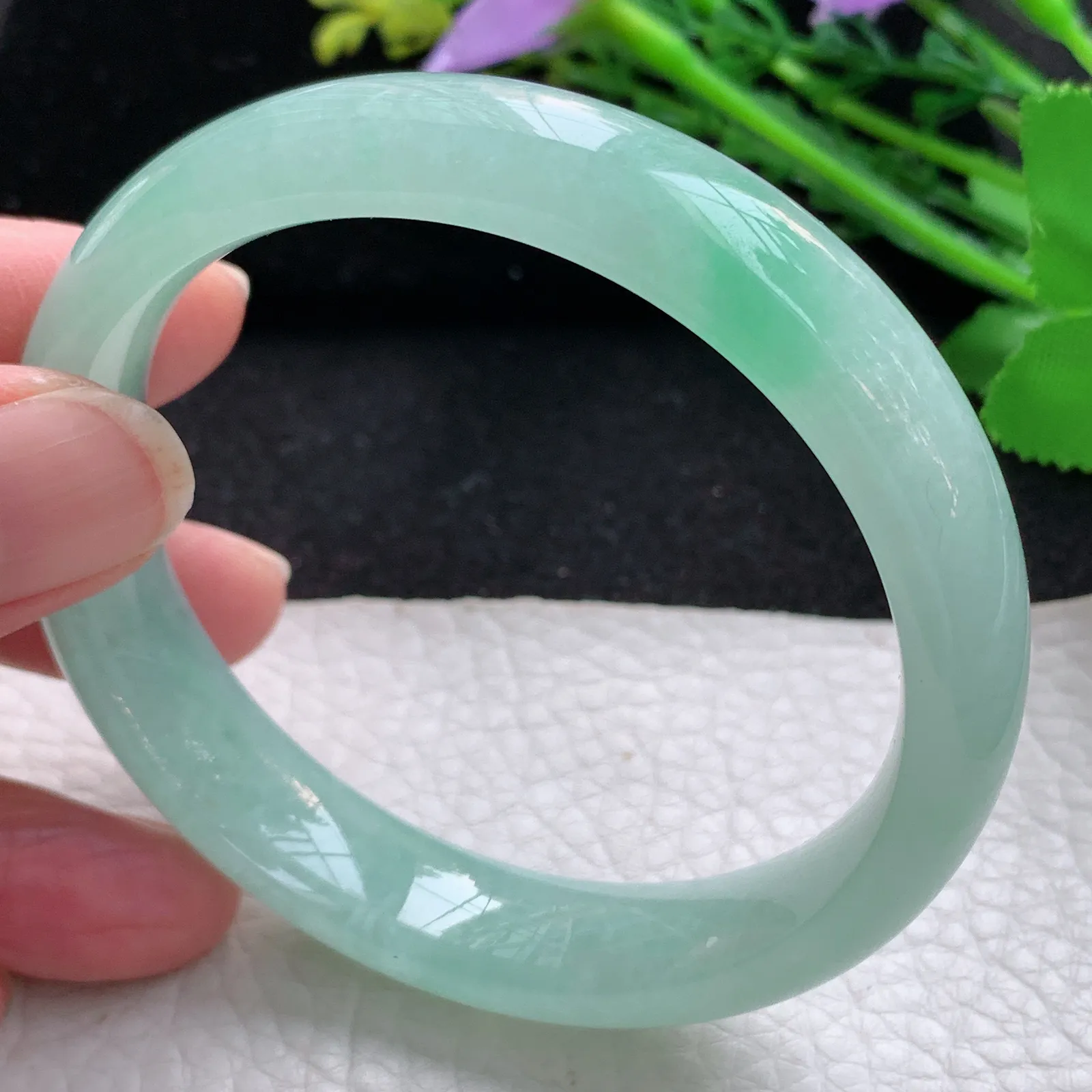 hy自然光58*14.5*8.5平安镯 缅甸翡翠a货玉手镯飘花宽边玉手环