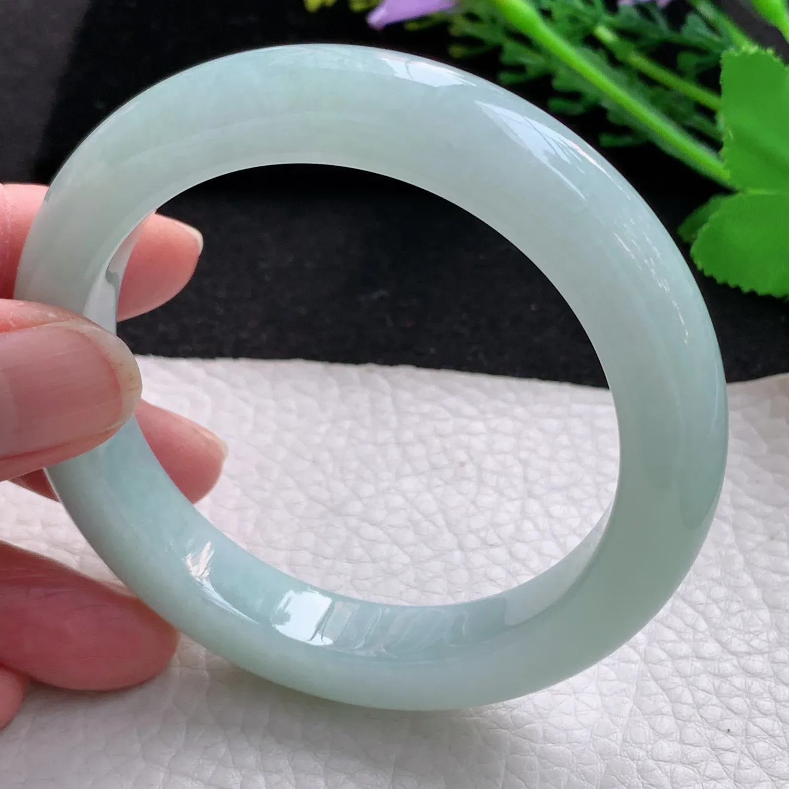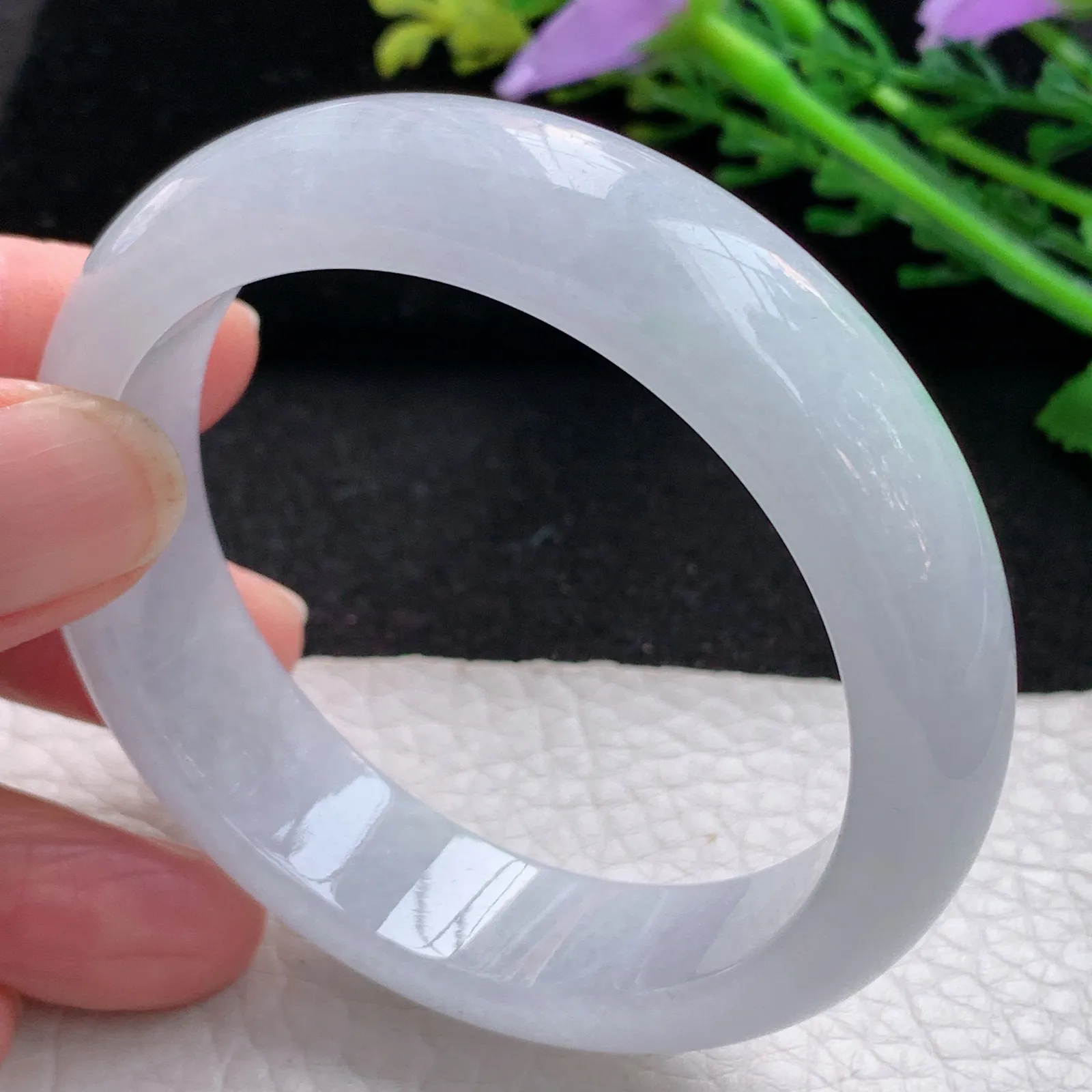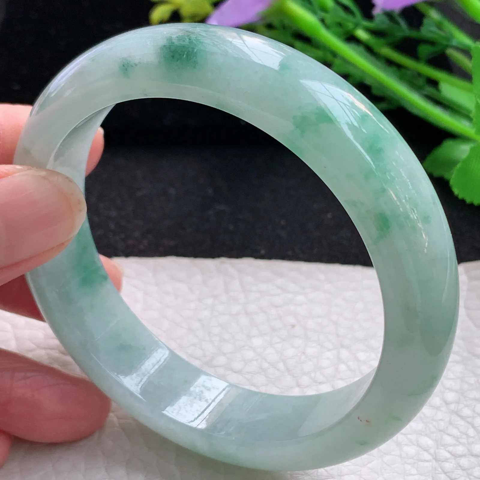 jm自然光53.5*14.3*7.5平安镯 缅甸翡翠a货玉手镯水润飘花宽边玉手环