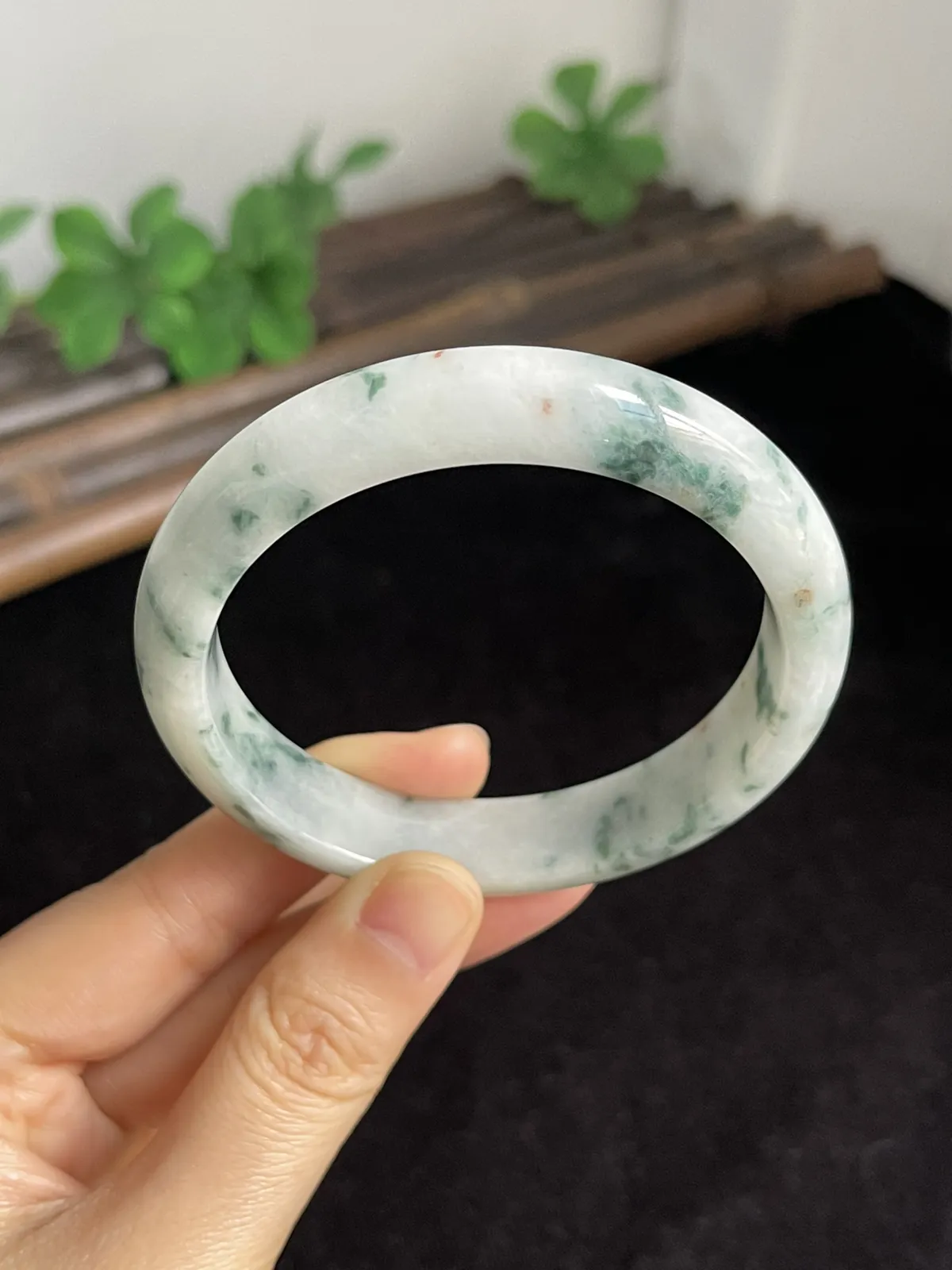 正圈56.3圈口,翡翠糯化种白底飘花飘绿手镯