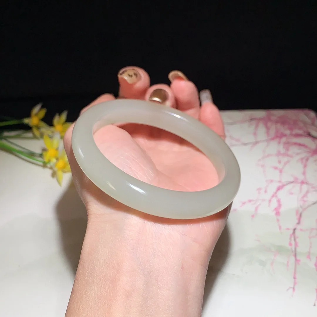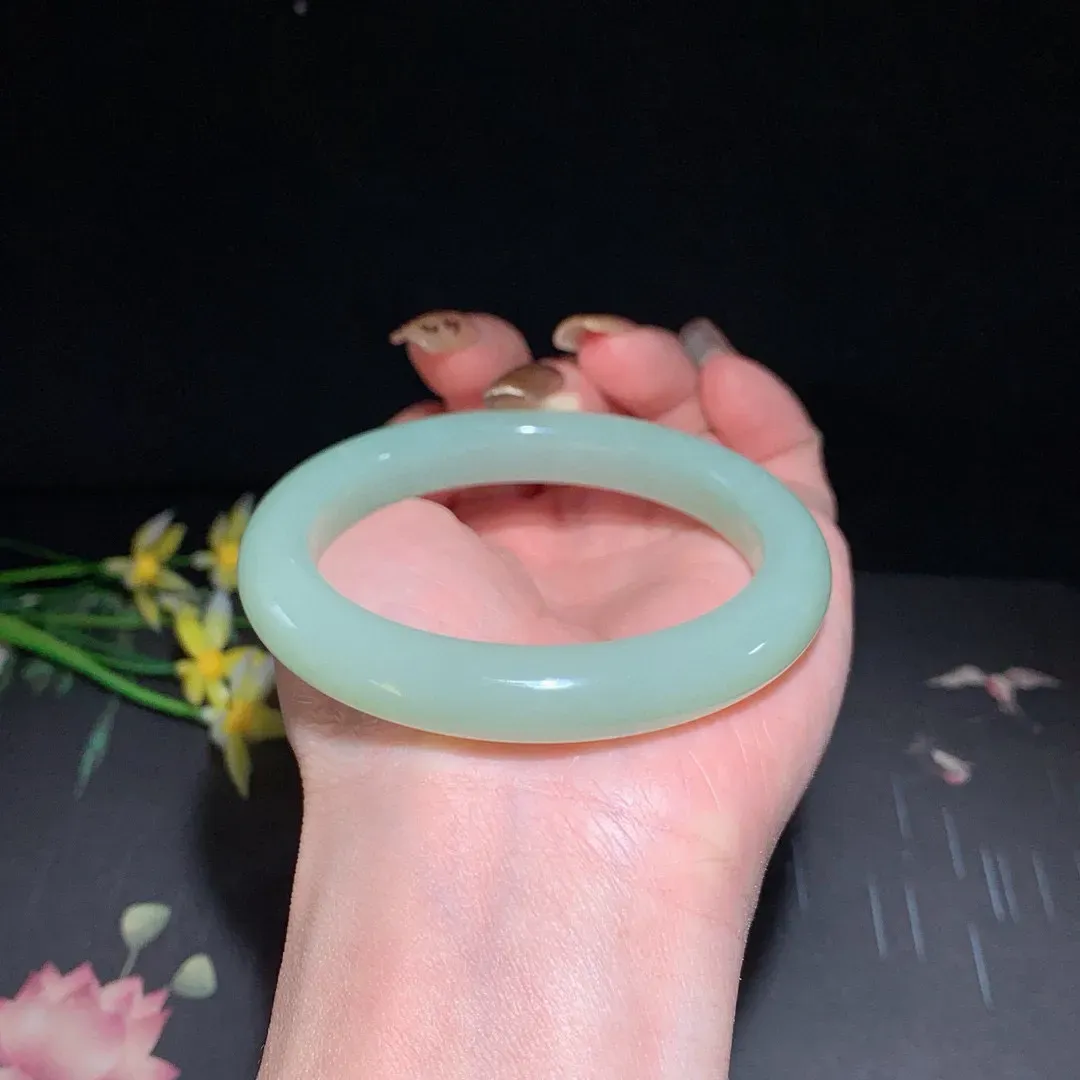 实拍A货翡翠54.5/15.5/8.1老坑精美温润飘花手镯宽边玉镯子平安镯