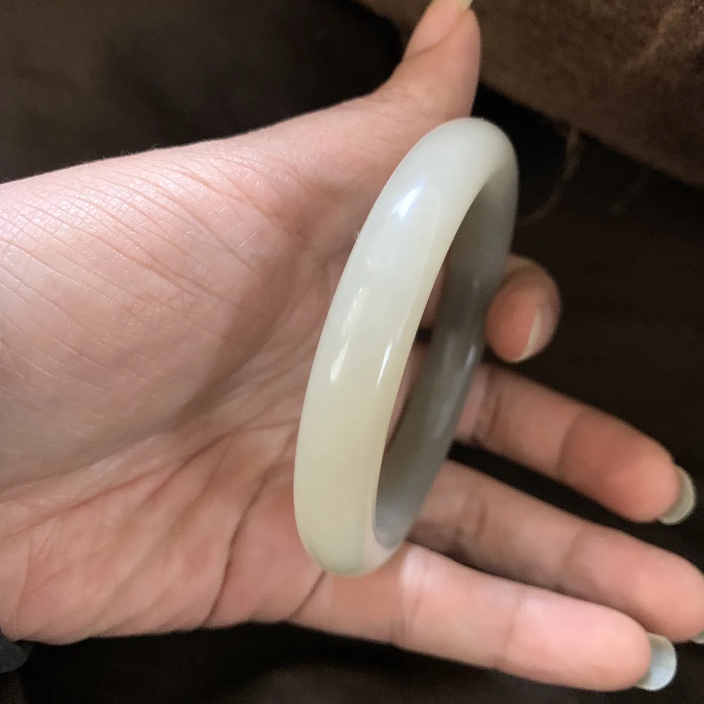 和田玉55.3圈口晴水色手镯,镯型古朴典雅。在诗情画意的雨巷相遇,你是我腕间的一抹风情,有你眸有深情