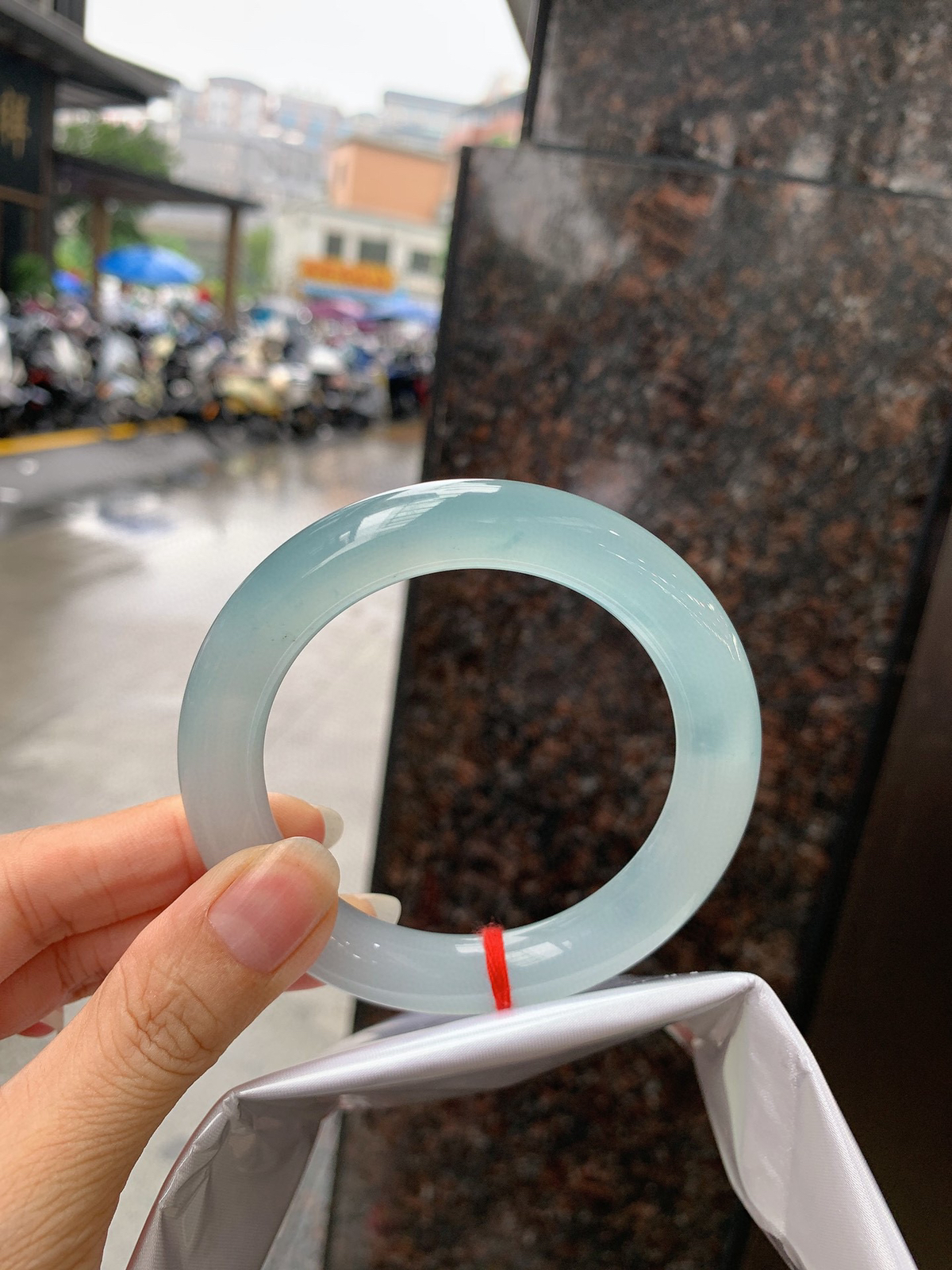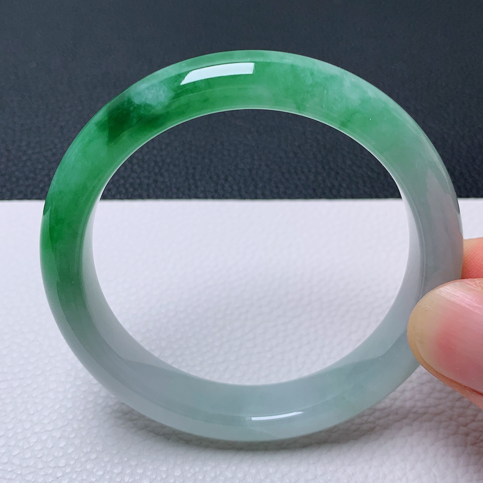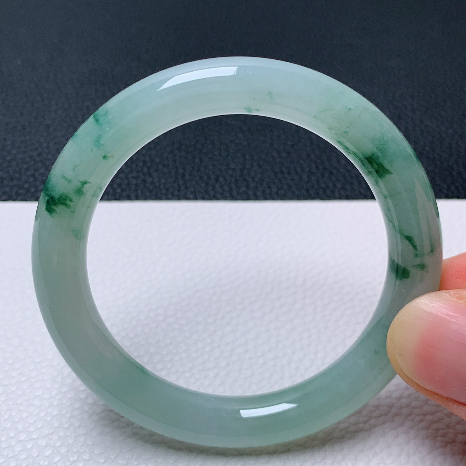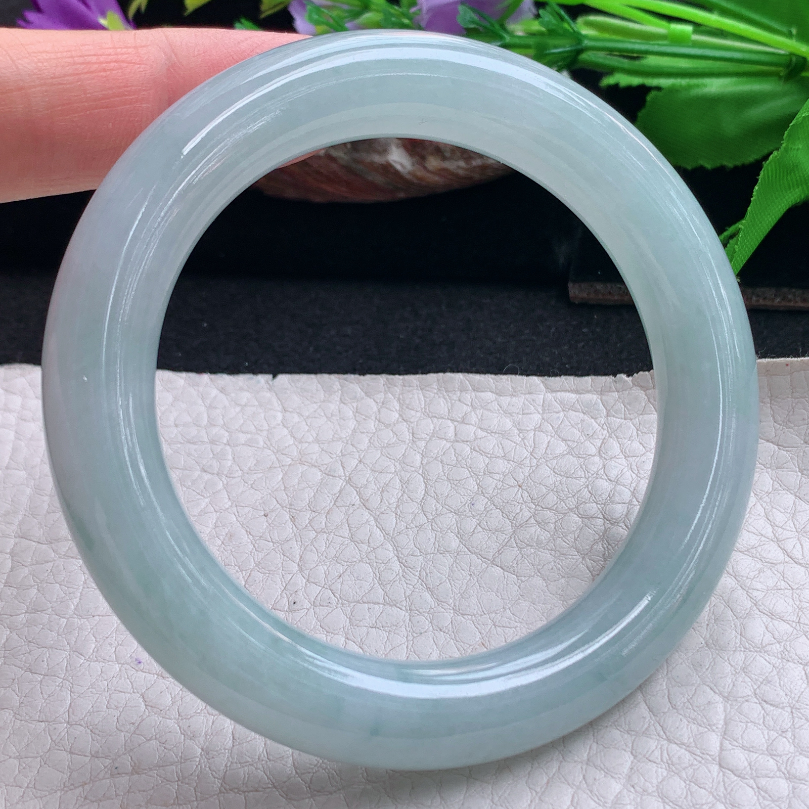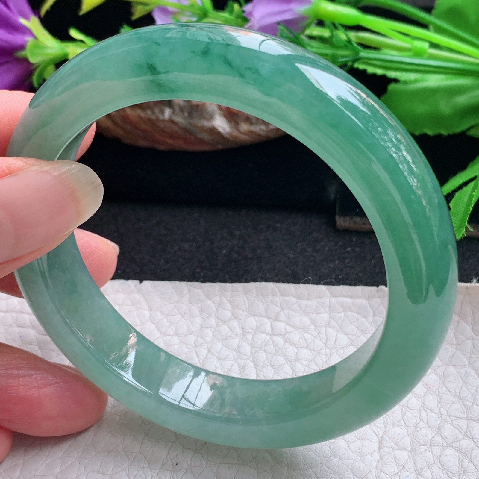 r实拍57*11美人镯 天然缅甸翡翠手镯蓝韵圆条正圈玉镯子