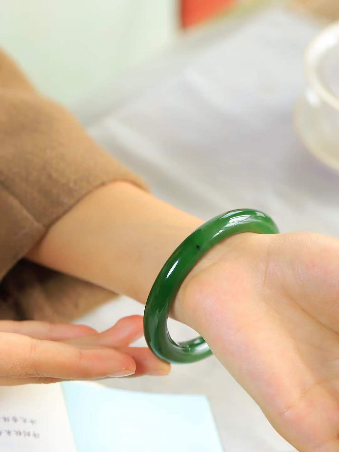【温润如心.镯】 精品和田玉碧玉手镯,精选上等碧玉料,色泽清透,质地细腻。佩戴它,感受千年玉文化