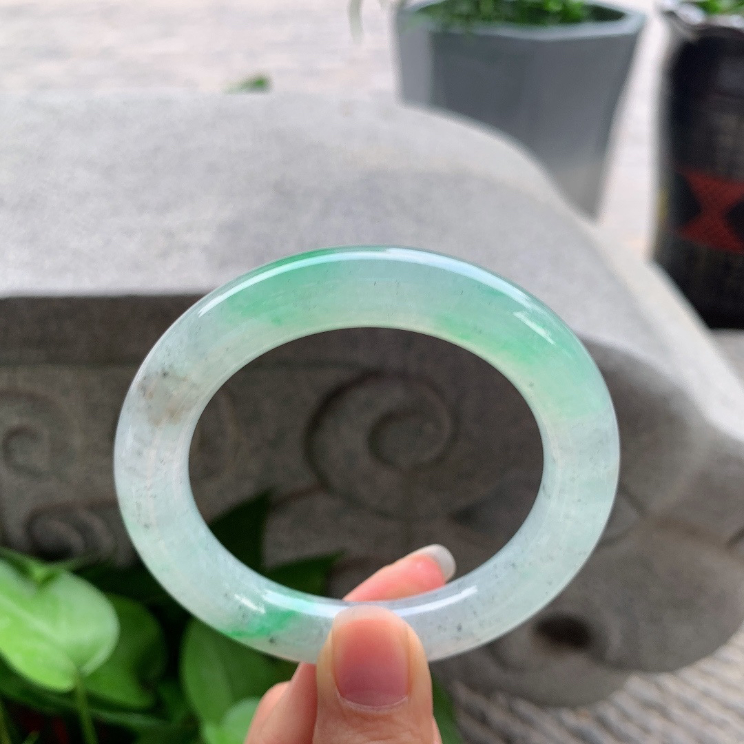 圈口 55.8-10.8【冰乌鸡飘绿圆条手镯】圆条55 56可戴