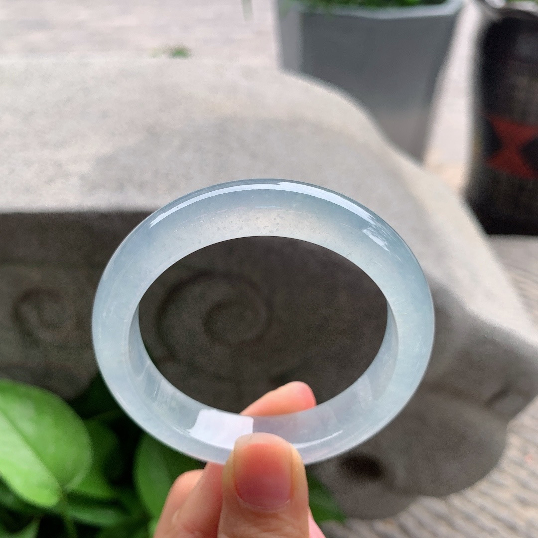小圈口 53.5-12.4-8.4【高冰玻白正圈手镯】正圈53 54可戴
