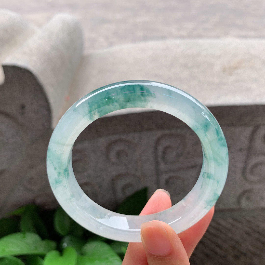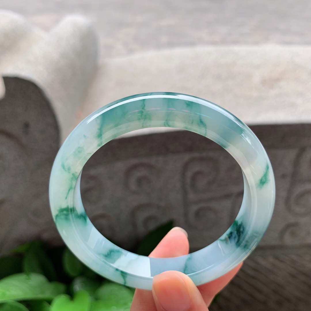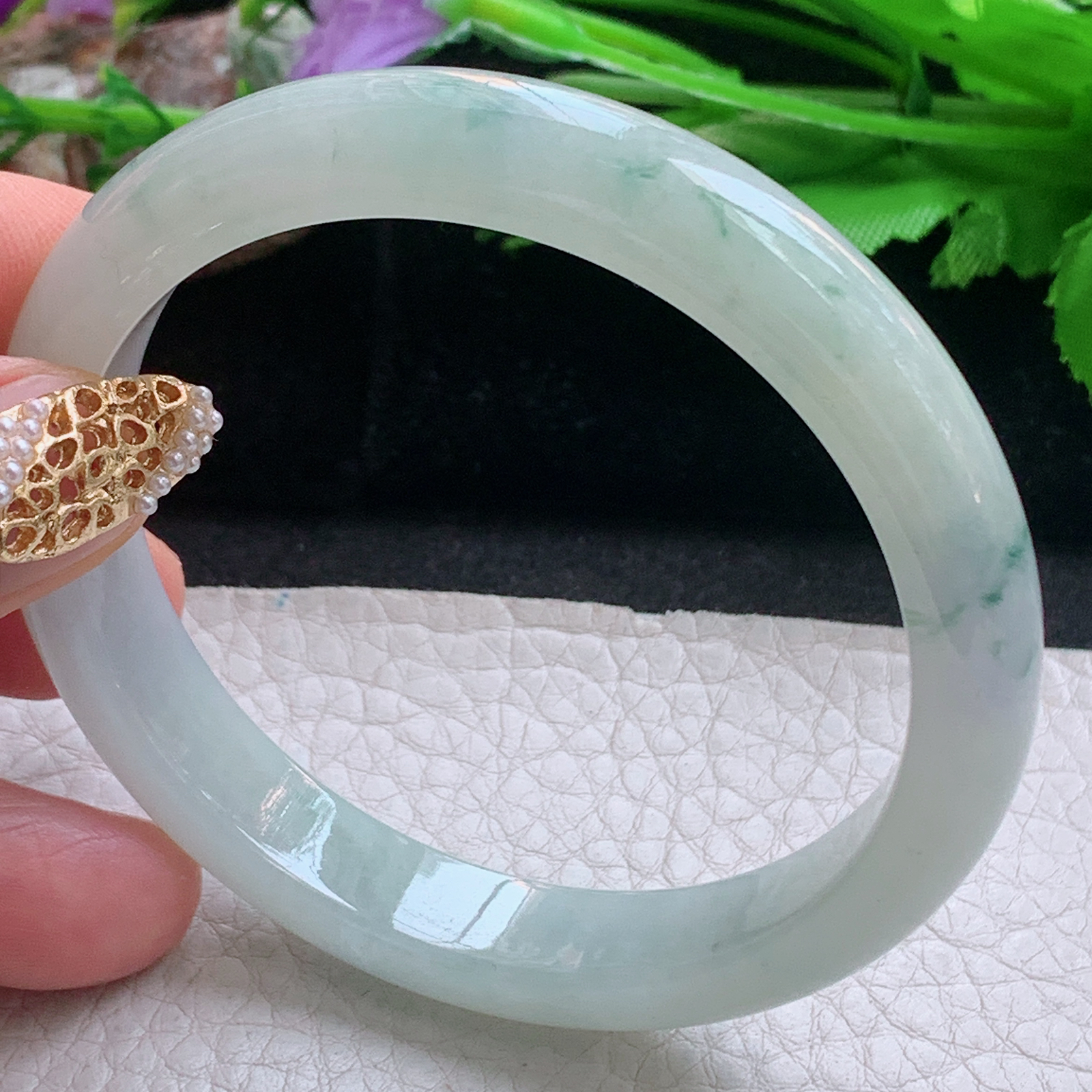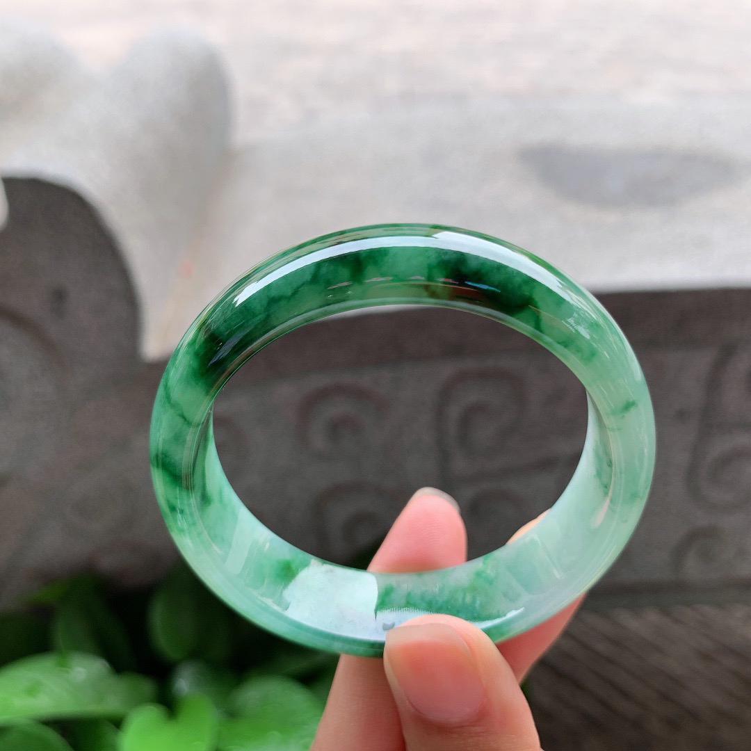 xx实拍56*10.5*7.5平安镯 天然缅甸翡翠a货手镯飘花秀气正圈叮当镯