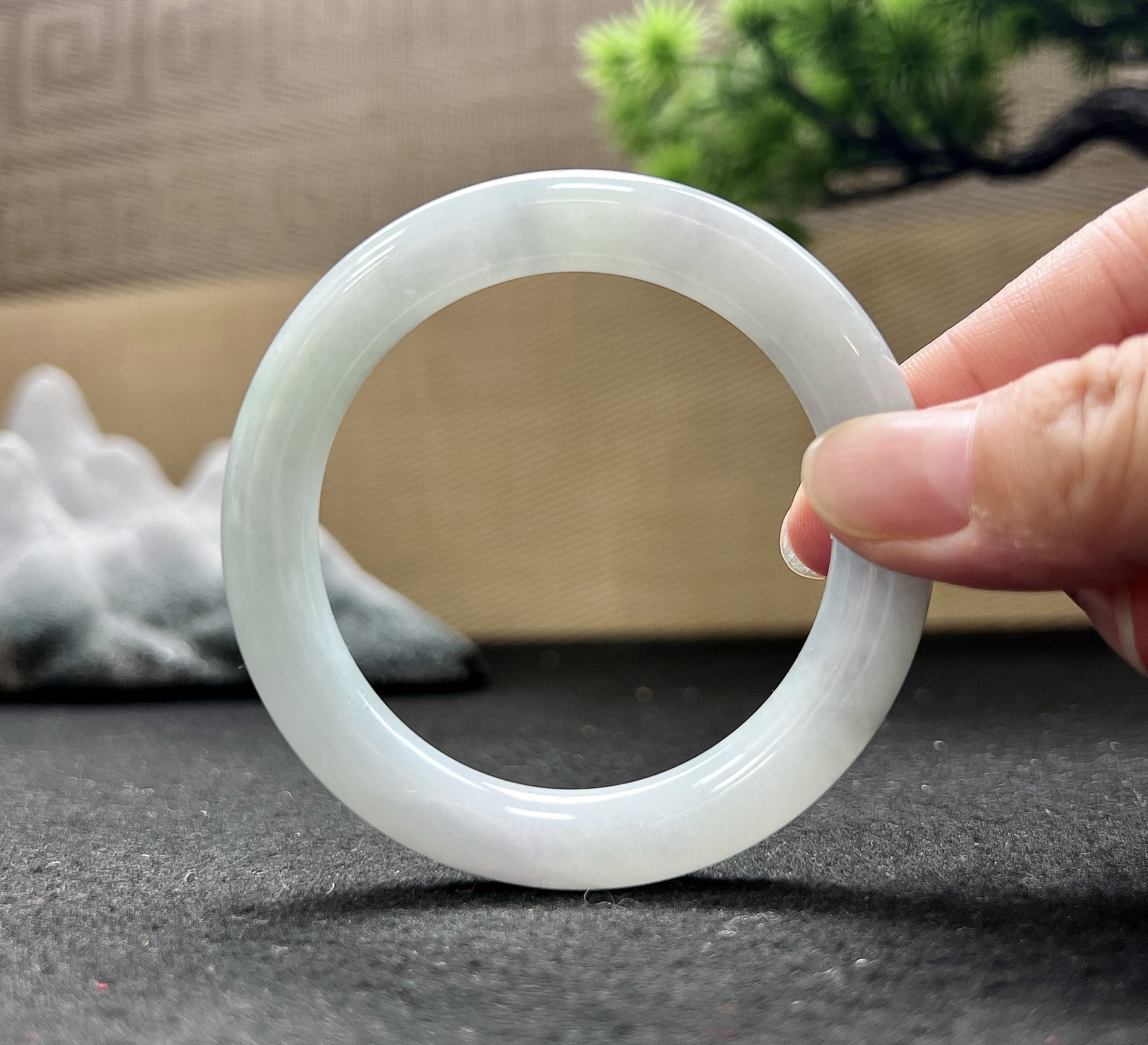 实拍A货翡翠54/12.5老坑秀气冰润晴底胖圆条手镯翡翠玉镯平安镯