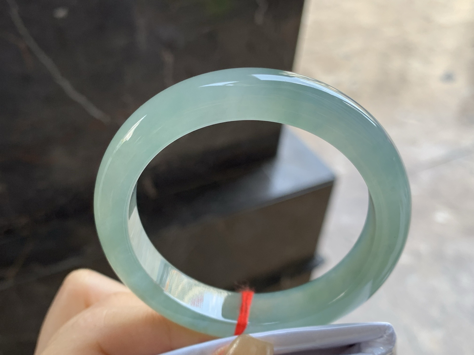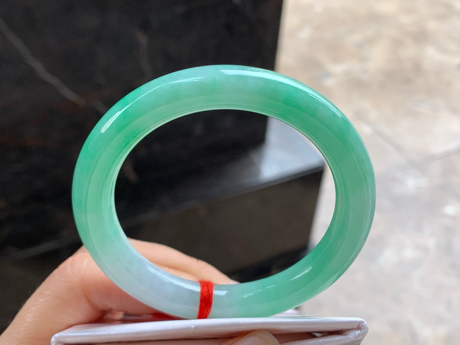 A货天然翡翠冰糯种飘花手镯59圈重量52.54 4月25日