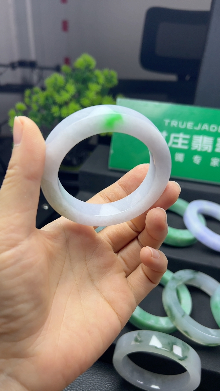 A货天然翡翠冰糯种飘花手镯59圈重量52.54 4月10日