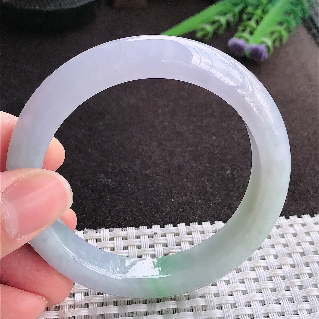 实拍A货翡翠56.5/12.5/9.1老坑冰润起胶紫罗兰手镯宽边玉镯子平安镯
