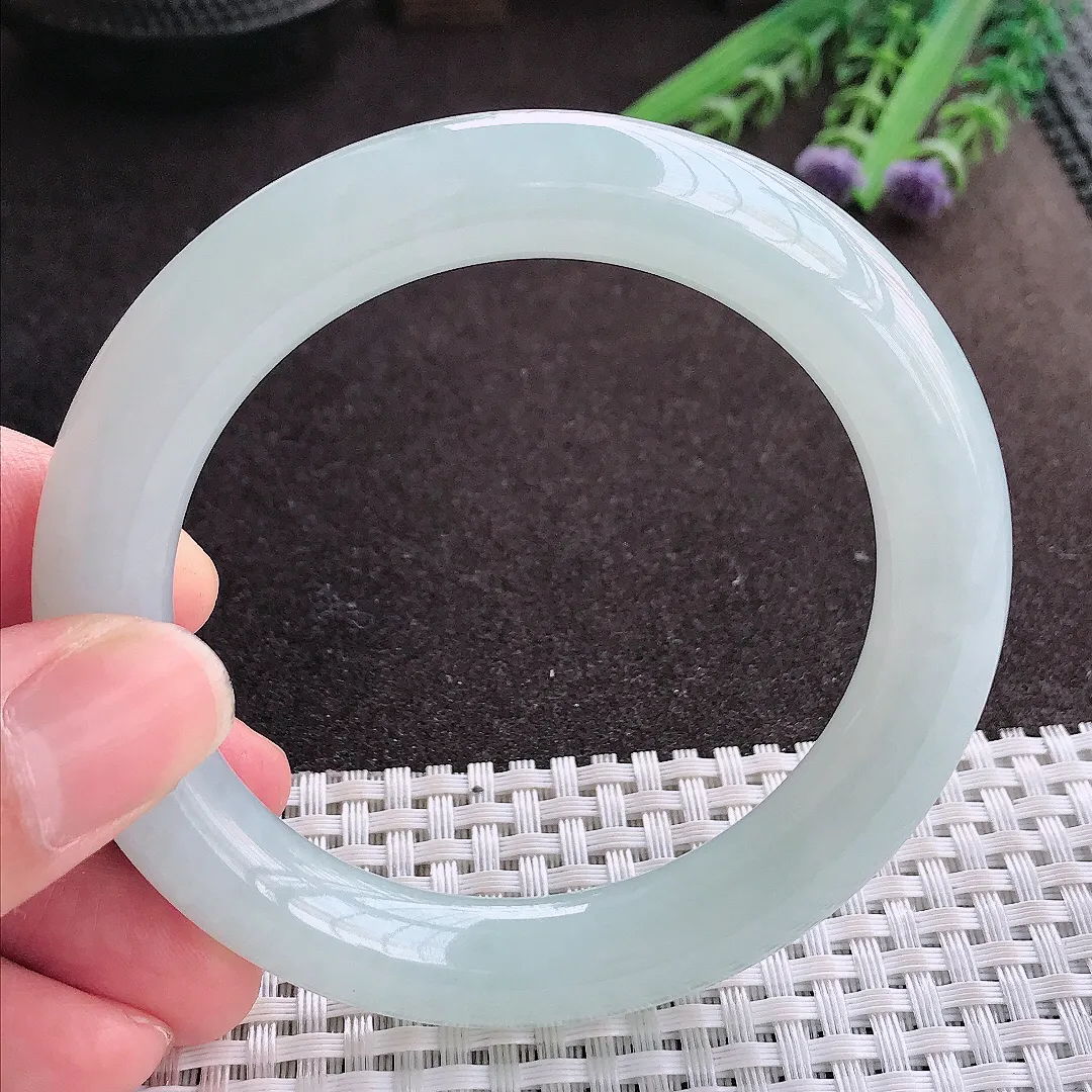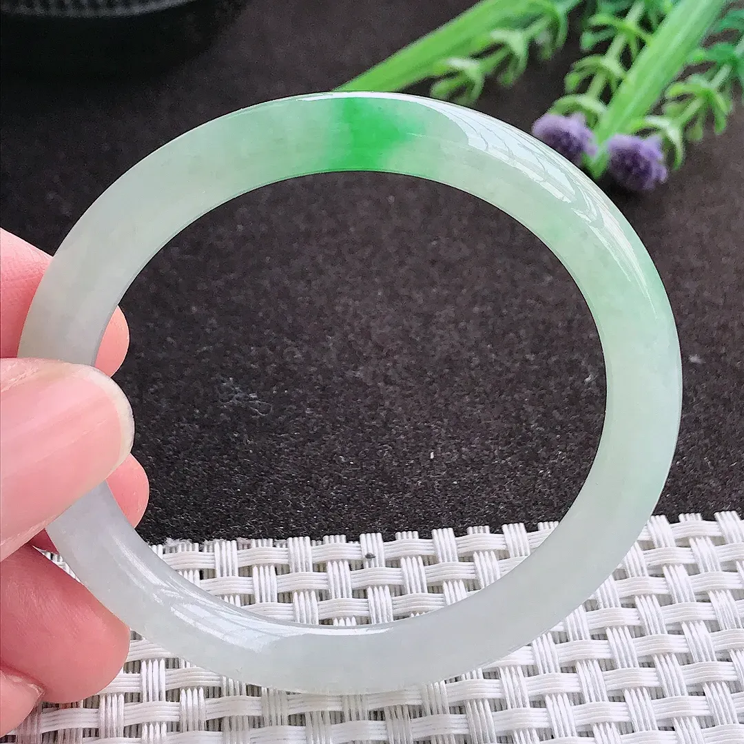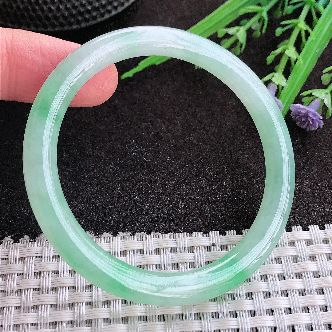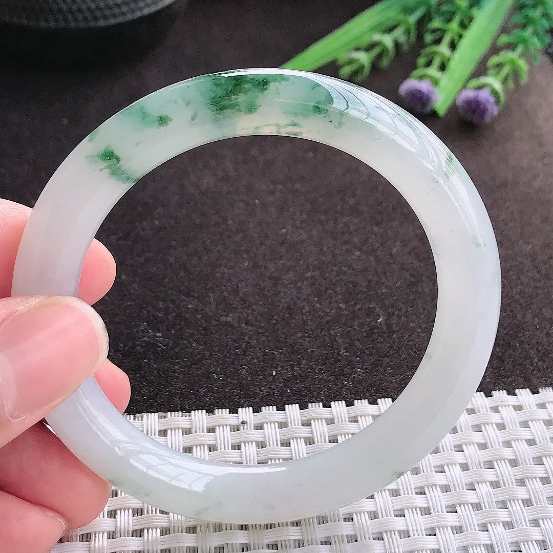 实拍A货翡翠53.5/9/9.3老坑冰胶果冻冰飘花圆条手镯翡翠玉镯子平安镯