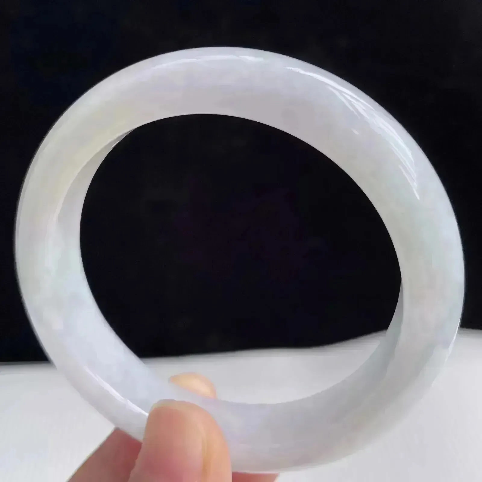 54圈有种有色天然翡翠A货淡紫玉手镯好种水春彩水润手镯57.30g